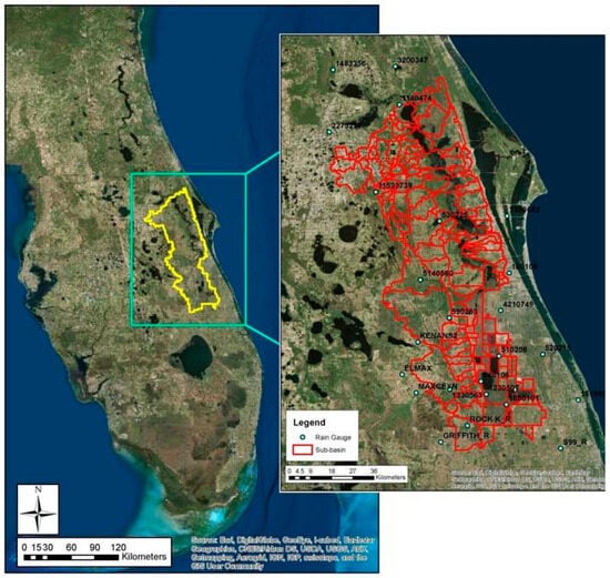 Figure 1 shows the model domain with sub-basin delineation and available rain gauge locations. Gauges are maintained by the United States Geological Survey (USGS), USACE, South Florida Water Management District (SFWMD) and SJRWMD.
