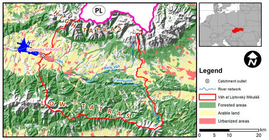 The method for flood frequency analysis that is described above was applied in the mountainous catchment of the River Váh with an outlet at the Liptovský Mikuláš water gauge (1-4-21-02-027-01). The catchment is situated in the northern part of Slovakia between the two highest Slovak mountain ranges, i.e., the High Tatras in the north and the Low Tatras in the south (see
