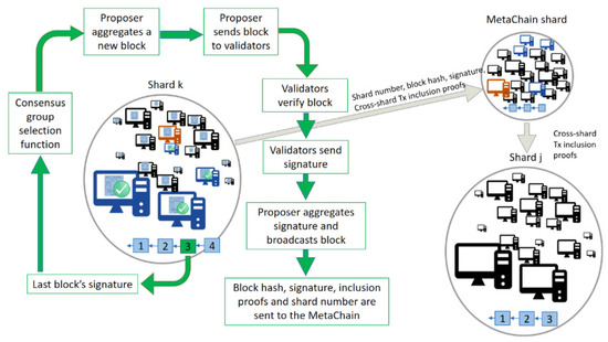 Adaptive state sharding approach of Elrond, last stage, Tx finalized. Source: Elrond, https://docs.elrond.com/learn/adaptive-state-sharding, Elrond–Docs (accessed on 17 May 2020). Adaptability and effectiveness [16].