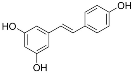 Trans-resveratrol (RSV) (3,4′,5-trihydroxy stilbene) (Figure 1) is a polyphenolic phytoalexin compound that has been studied in a broader scale to prevent and treat diseases due to its several biological effects [1]. Many beneficial properties of the compound are known, such as antioxidant, antidiabetic, cardioprotective, immunomodulatory, antitumor, antihypertensive, anti-inflammatory, platelet aggregation inhibitor, anti-ageing and anti-obesity effects [1,2,3]. RSV effectively attacks the extracellular reactive oxygen species (ROS) and is, therefore, a potent antioxidant compound. The use of RSV is recommended to prevent and treat chronic diseases such as metabolic disorders, tumours and neurodegenerative disorders [1,4]. It has been demonstrated in a rat model that RSV-containing lipid-based nanocarrier systems ameliorate the β-amyloid plaques that mediate memory impairments in Alzheimer’s disease [5]. The outcome of the RSV therapy is the result of different processes (reduction of NF-κB (nuclear factor-kappa B)), inhibition of apoptosis, lipid peroxidation, aggregation and hyperphosphorylation of τ-proteins, reduction of ROS-induced toxicity and number of β-amyloid plaques) [4]. The beneficial effects of RSV in Parkinson’s disease also relate to its antioxidant effect, as the molecule reduces the number of ROS and decreases the apoptotic cell damage caused by oxidative stress [4]. It has also been shown that liposomal RSV has a more substantial protective effect on the dopaminergic neurons of Striatum nigra in rats with Parkinson’s disease than the free drug [6]. Different conventional oral formulations have been developed in the pharmaceutical industry to exploit the therapeutic properties of RSV [1]; however, the application of free RSV in treatments is limited by its low bioavailability, metabolism and rapid elimination from the systemic circulation. The biological half-life of the compound is also short [3]. Two geometric isomers of RSV are known, trans- and cis-RSV, which have different biological activities. The isomerisation process occurs due to exposure to UV or visible light [7]. The trans-RSV is the more biologically active [7] and more stable isomer [8]; however, its practical use is significantly limited by its low water solubility, UV-light and heat sensitivity [1].