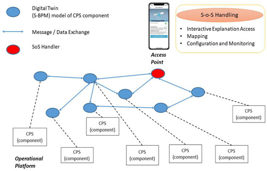 Another cross-concern is privacy management. For this governance case, e.g., as part of a CPS home healthcare appliance, the CPS components involved can be the ones included shown in Figure 2; however, they need to be considered from a different perspective (cf. [20]). In order to understand which privacy-relevant data are produced and shared between the components, SoS handling includes interactive explanatory access to each digital representation of a CPS component, e.g., in terms of detailed behavior diagrams (representing BeEs) when using S-BPM’s (Subject-oriented Business Process Management) integrated modeling, validation, and execution approach [21]. It also includes collecting privacy requirements affecting BeEs, and could require CPS (re-)configuration. Monitoring helps checking whether the privacy requirements are met when operating the CPS.