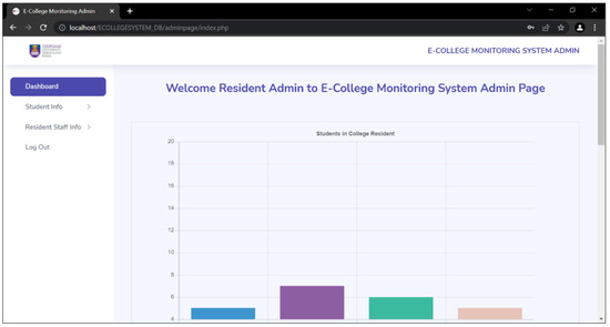 The figure specifies the system’s boundaries. It identifies the information flows between the system and the external entities. The E-College Monitoring System was developed for college students to assist them in keeping track of their time spent on and off the campus of UiTM. To log into the system, students must complete a form through the E-College Monitoring System. Once users have successfully registered with the system, they can use the system’s QR code scanning feature. The system will display the outing records. As for the College Resident Staff, they can log in with their staff IDs. A student’s scan results are reflected in the system, and their check-in and check-out times are immediately displayed.