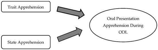 By adapting the questionnaires and theoretical frameworks from Santrock [12] and Noor Hanim et al. [11], Figure 1 reveals the conceptual framework of the study. This study explores the factors of trait and state of apprehension regarding oral presentations given over ODL among students. The trait of apprehension is an internal factor related to personal characteristics, whereas the state of apprehension is an external factor from the environment.