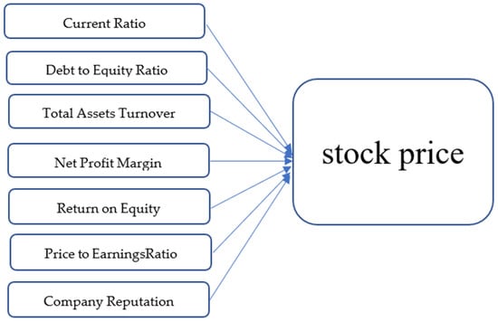 Changes in stock prices on the stock exchange or secondary market are influenced by several factors, one of which is the company’s internal factors. The company’s performance is an internal factor of the company that can be seen through the company’s financial ratios. Generally, the fundamental factors studied in the financial statements are in the form of financial ratios such as liquidity, leverage, profitability, and market ratios. Based on the explanation of Chapters 1 and 2, the variables in this study are Current Ratio (CR), Debt to Equity Ratio (DER), Total Assets Turnover (TATO), Net Profit Margin (NPM), Return on Equity (ROE), Price to Earnings Ratio (PER), and Company Reputation as variable X and stock price as variable Y. Systematically, the theoretical framework in this study can be shown in the following figure (Figure 1):