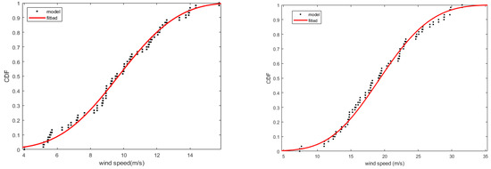 Figure 2 and Figure 3 show the comparison results of measured and simulated wind speed. The results imply that the overall trend of the simulated wind speed is consistent with the measured wind speed. In addition, the difference between the simulated wind speed and the measured wind speed is relatively small in terms of wind speed values, which indicates that the used wind field parameter model can better reproduce the characteristics of typhoons in the southeast coastal areas.
