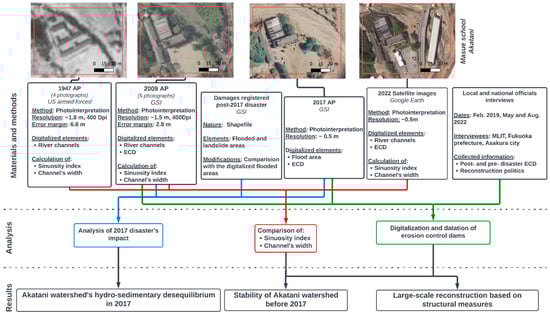 To verify our hypothesis, we will rely on (i) fieldwork and three interviews conducted in 2019 and 2022, (ii) digitalization of floods and mass movement in the AK watershed supported by data from the Geospatial Information Authority of Japan (GSI), (iii) diachronic analysis of river channel width and sinuosity between 1947 and 2022, and (iv) evolution of pre- and post-disaster number of ECDs.