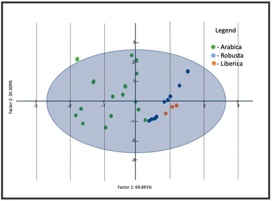 - Sy, J.K.; Villegas, A.M.L.; Ytienza, S.I.E.; Ablan Lagman, M.C.A. Comparison of total protein, caffeine, chlorogenic acid and bean morphology in infra-species of Coffea liberica. Philipp. Sci. Lett. 2023. Submitted. [Google Scholar]