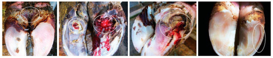 One of the most significant problems in cattle is lameness. The percentage of lameness prevalence among cattle that were exposed to the same environmental risk factors was 36.8% for U.K. [1] and relatively lower (18.7%) but also high for Greece [2]. Lameness is the declination from normal limb motion, usually with the presence of pain. Figure 1 presents some of the most frequent forms of infections in cattle hoofs that cause lameness.