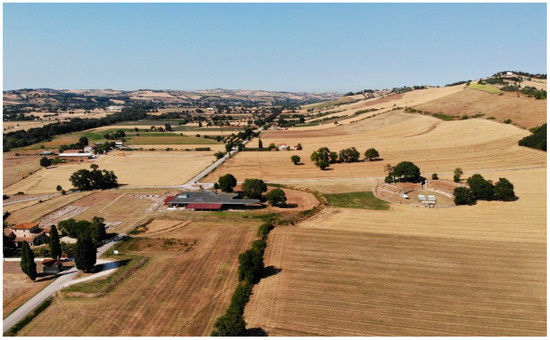 - Quiri, P. Castellone di Suasa (AN): Anfiteatro romano di Suasa. In Scavi e Ricerche Nelle Marche. Introduzione alla Mostra; Luni, M., Ed.; Quattro Venti: Urbino, Italy, 1991; pp. 44–45. [Google Scholar]