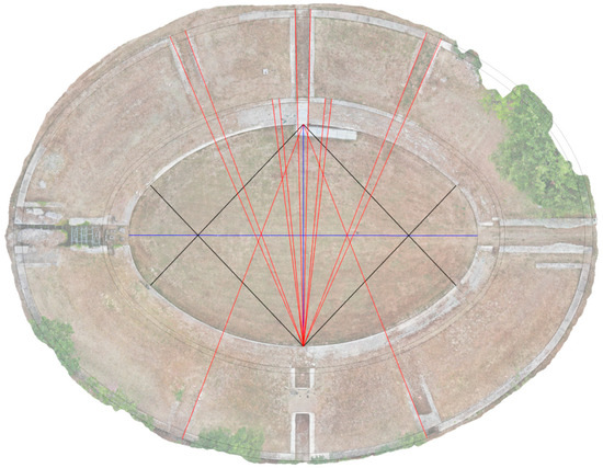 The intense survey activity implemented during the laboratory has allowed us to increase knowledge on various formal aspects of the Suasan building: the real dimensions, the definition of the geometric shape, and the construction typology. Thanks to the dimensional data of the axes of the arena, which were 60.08 m corresponding to 203 Roman feet (major axis) and 38.18 m relating to 129 feet (minor axis), it was possible to determine the ratio between the axes: 1.56 (i.e., 11:7). This information was used to calculate the constructive module of the amphitheater, corresponding to 5.46 m that is equal to 18.5 Roman feet. The calculation of the module made it possible to determine that the shape of the Suasan building was traced on the ground by the