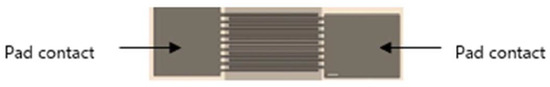Electrical microdevice design used for sensing performance evaluation with 16 Pt electrodes of 100 µm width. The distance between each electrode is 50 µm.