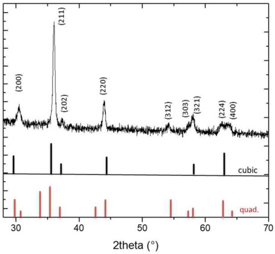 - Balagurov, A.; Bobrikov, I.; Maschenko, M.; Sangaa, D.; Simkin, V. Structural phase transition in CuFe2O4 spinel. Crystallogr. Rep. 2013, 58, 710–717. [Google Scholar] [CrossRef]