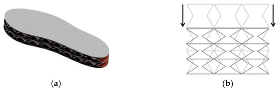 Figure 1a illustrates the conceptual design of the proposed hourglass-shaped TENG (H-TENG) shoe insole. Such a structure design is to maximize the space usage of TENG within the shoe. When a force is applied vertically, the structure only changes size vertically while keeping the same length horizontally, as shown in Figure 1b, which is ideal for confined space applications such as insole.