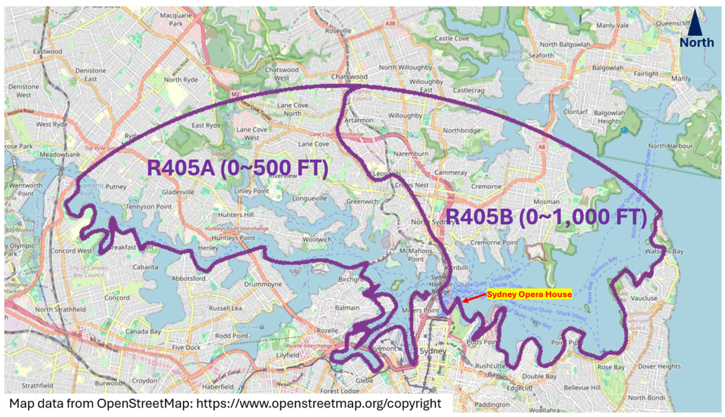 - CASA. Approval and Permission for Operation of RPA Within Sydney Harbour Restricted Airspace R405A/B Instrument 2023. Available online: https://www.legislation.gov.au/F2023N00533/latest/text (accessed on 18 November 2025).
