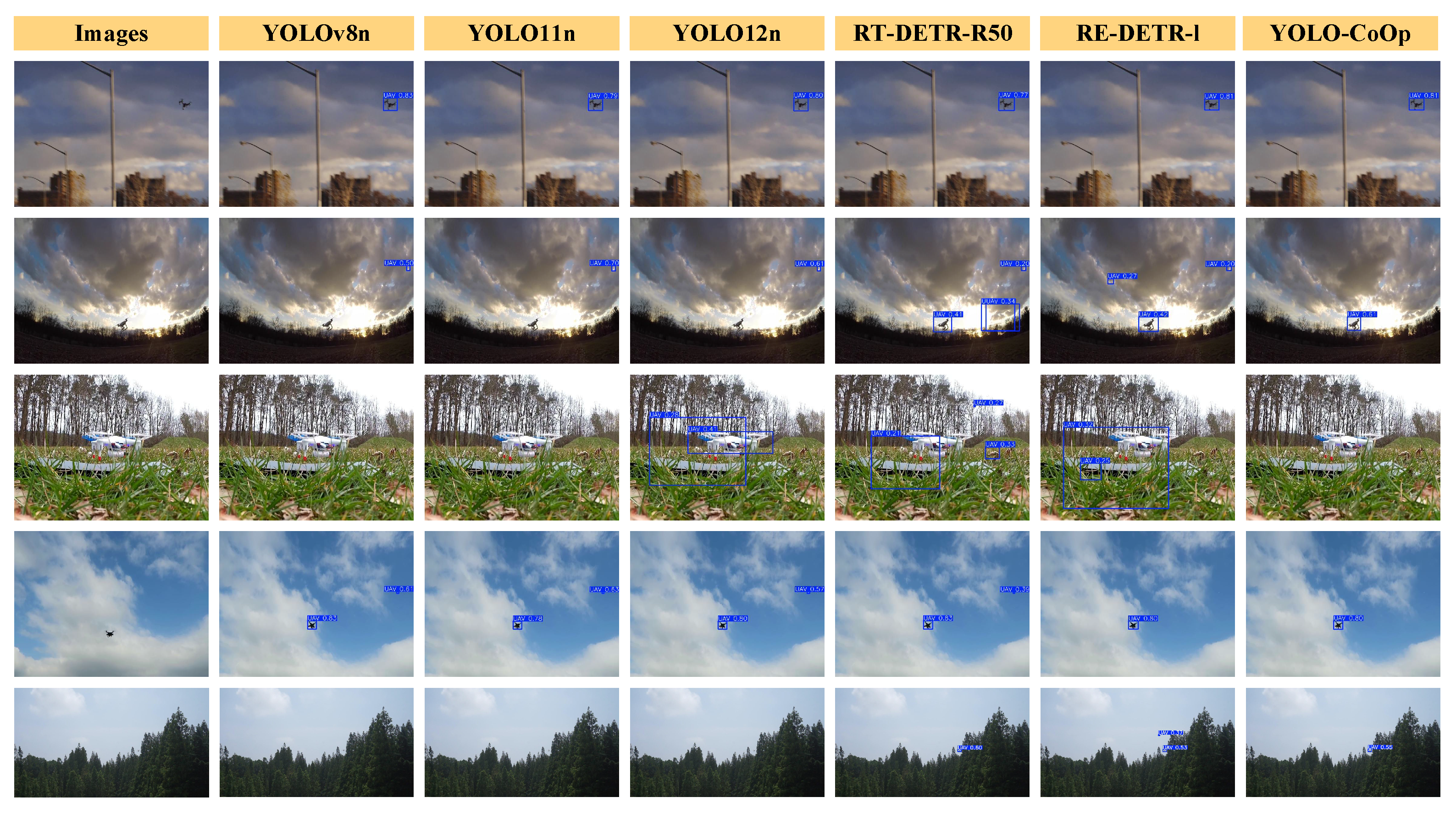 - Proposition of YOLO-CoOp, a lightweight multi-module collaborative framework with HRFPN, C3k2-WT, SCSA, and DyATF modules specifically optimized for small UAV detection.