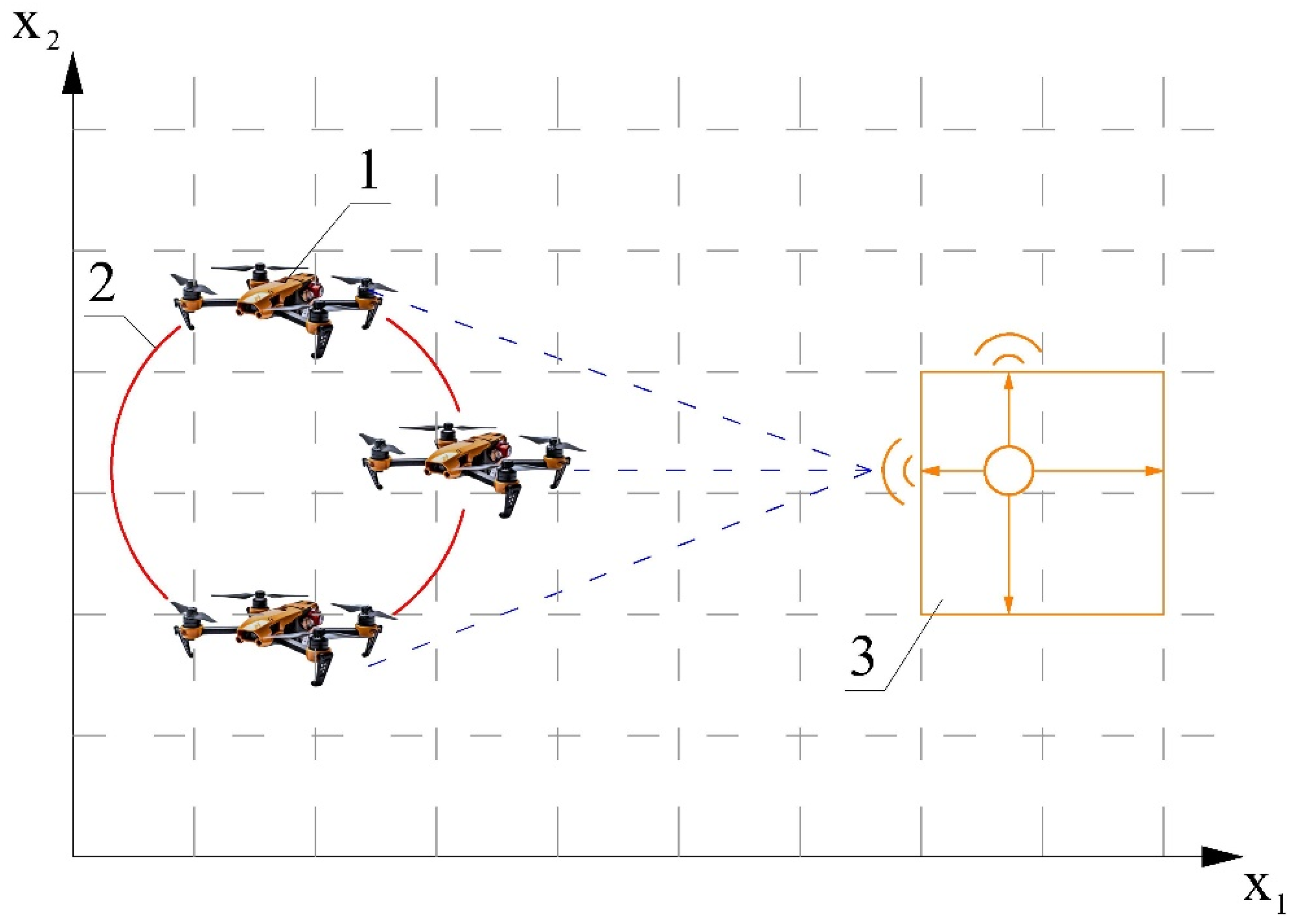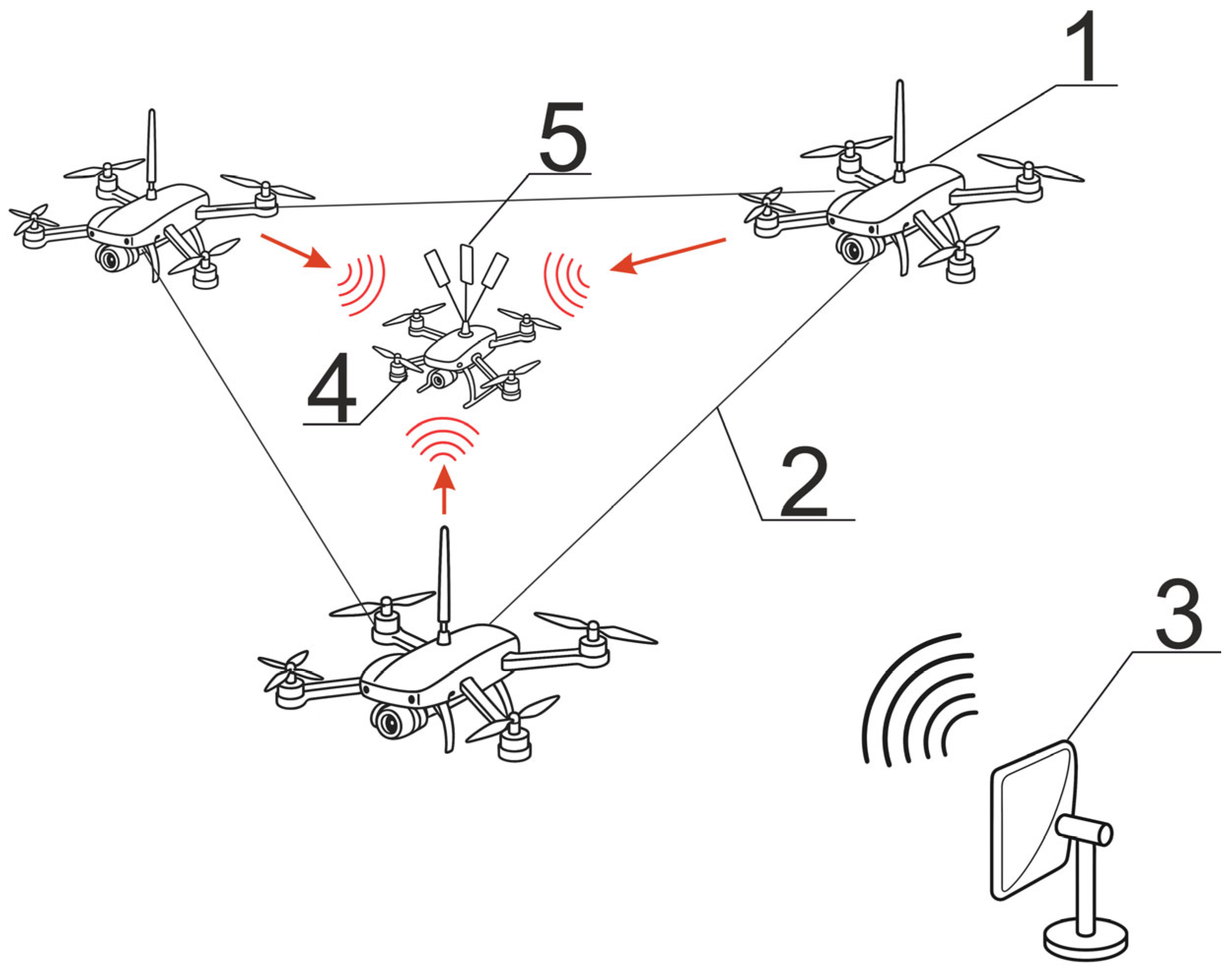 - The method enables secure, interference-resistant command transmission from the operator to the UAV group and supports the detection of external radio emitters (including operators and electronic-warfare systems) under line-of-sight conditions.