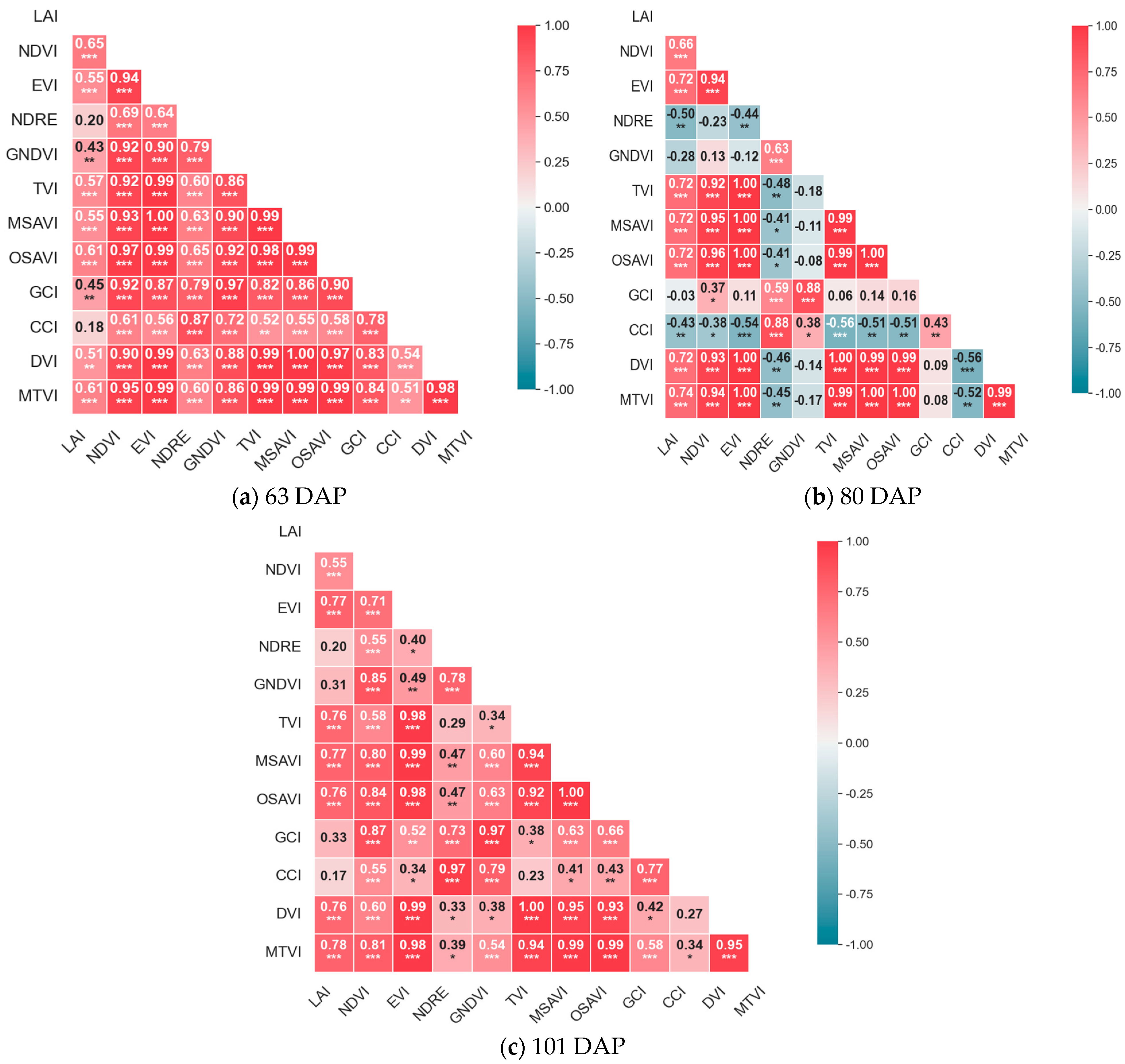 | CCI | [≥0] | Canopy chlorophyll index; red-edge is more sensitive | [53] | |