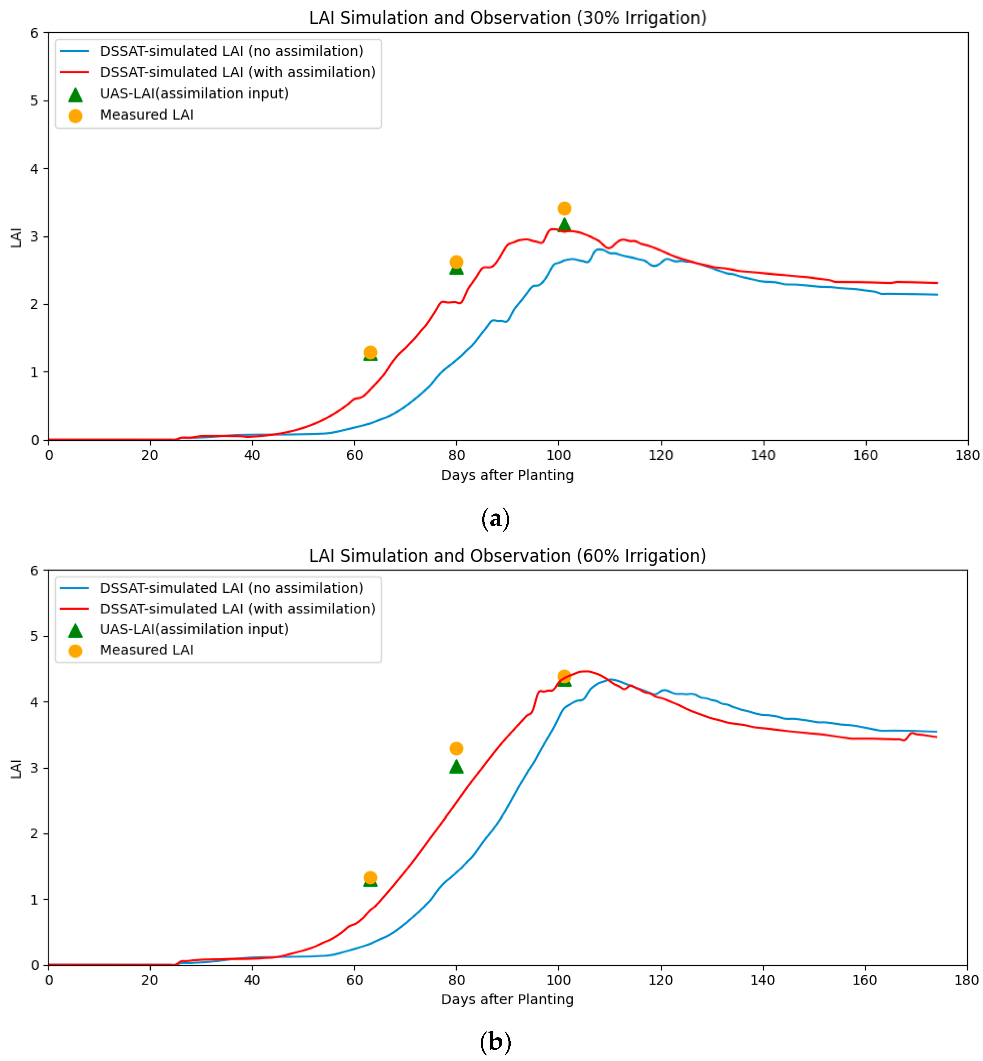 APA StylePeng, H., Esirige, Gu, H., Gao, R., Zhou, Y., Men, X., & Wang, Z. (2026). Estimation of Cotton LAI and Yield Through Assimilation of the DSSAT Model and Unmanned Aerial System Images. Drones, 10(1), 27. https://doi.org/10.3390/drones10010027