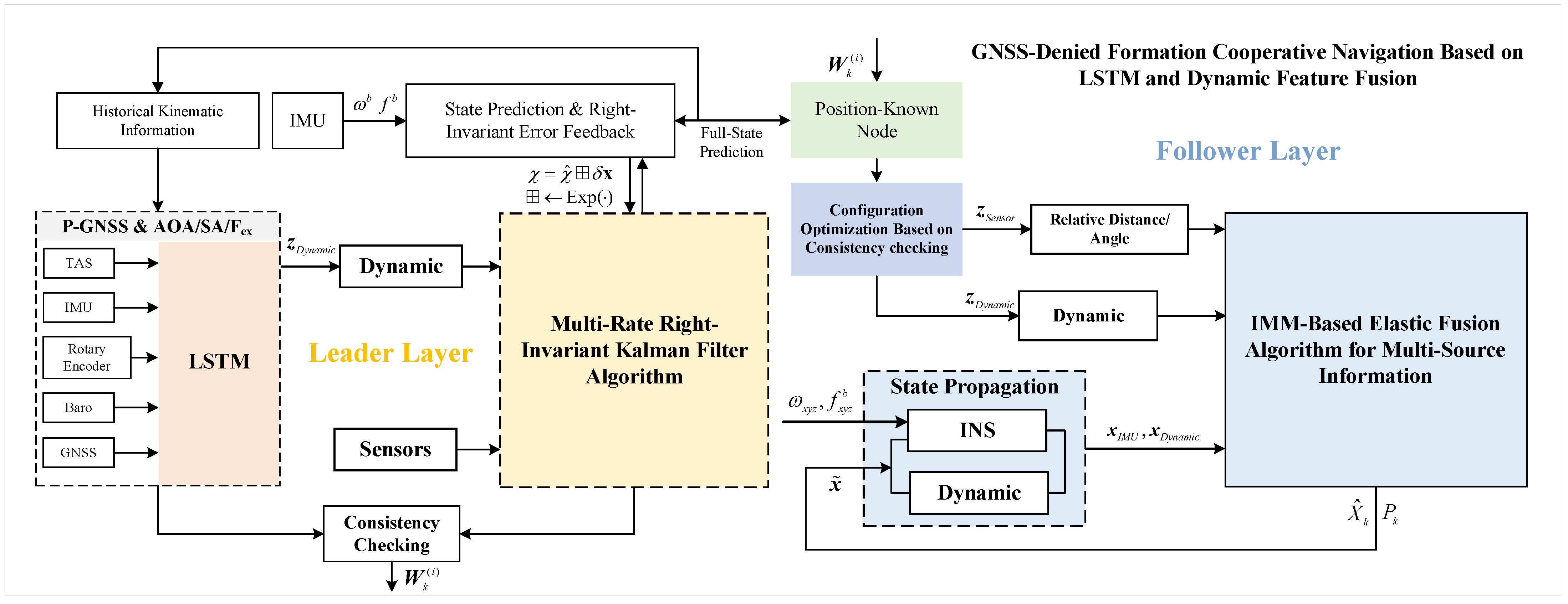 APA StyleSong, F., Zeng, Q., Zhu, X., Zhang, R., Ye, X., & Zhou, H. (2026). Cooperative Navigation Framework for UAV Formations Using LSTM and Dynamic Model Fusion. Drones, 10(1), 28. https://doi.org/10.3390/drones10010028