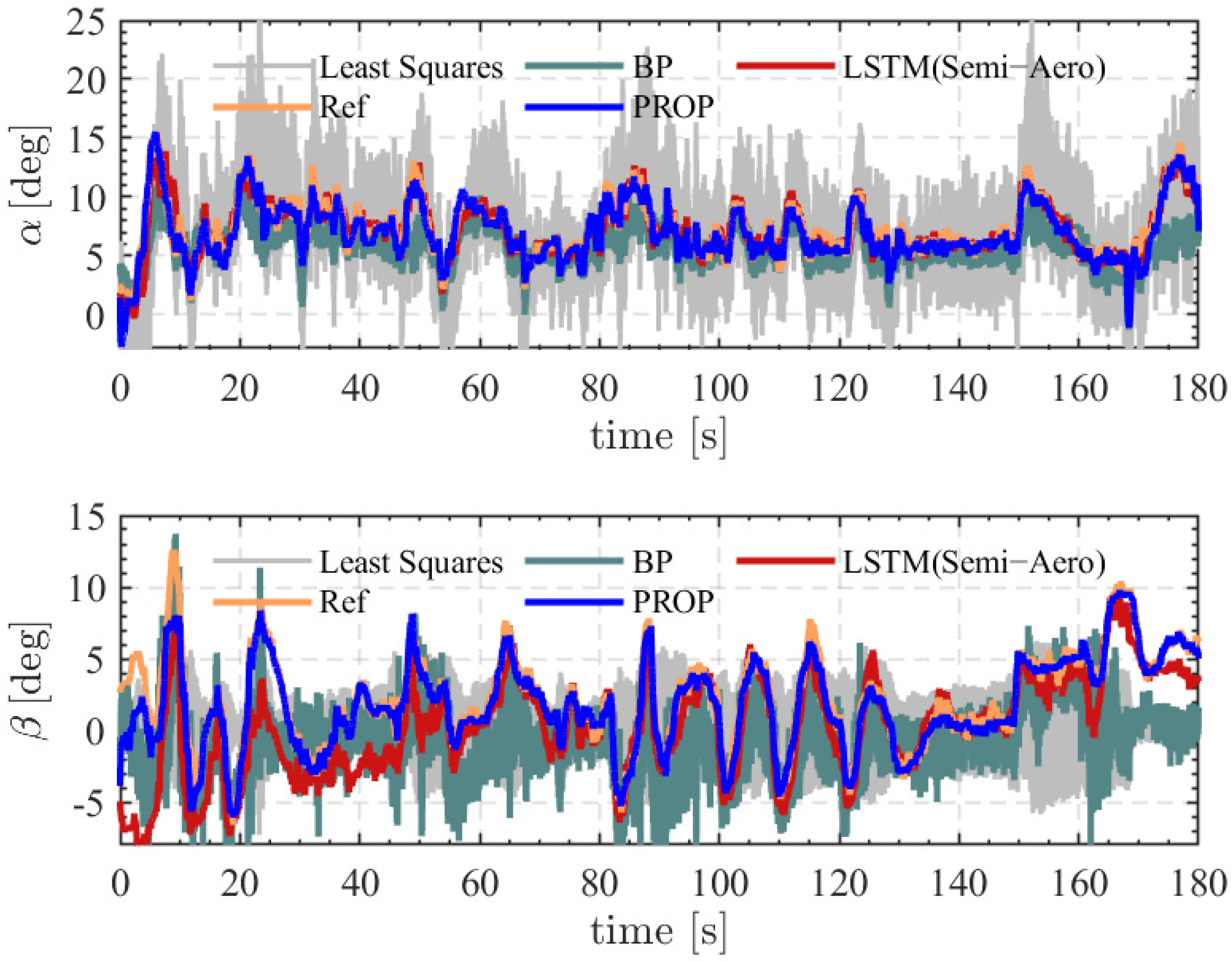 - Output: GNSS position increments and aerodynamic states, including angle of attack , sideslip angle , and external forces .