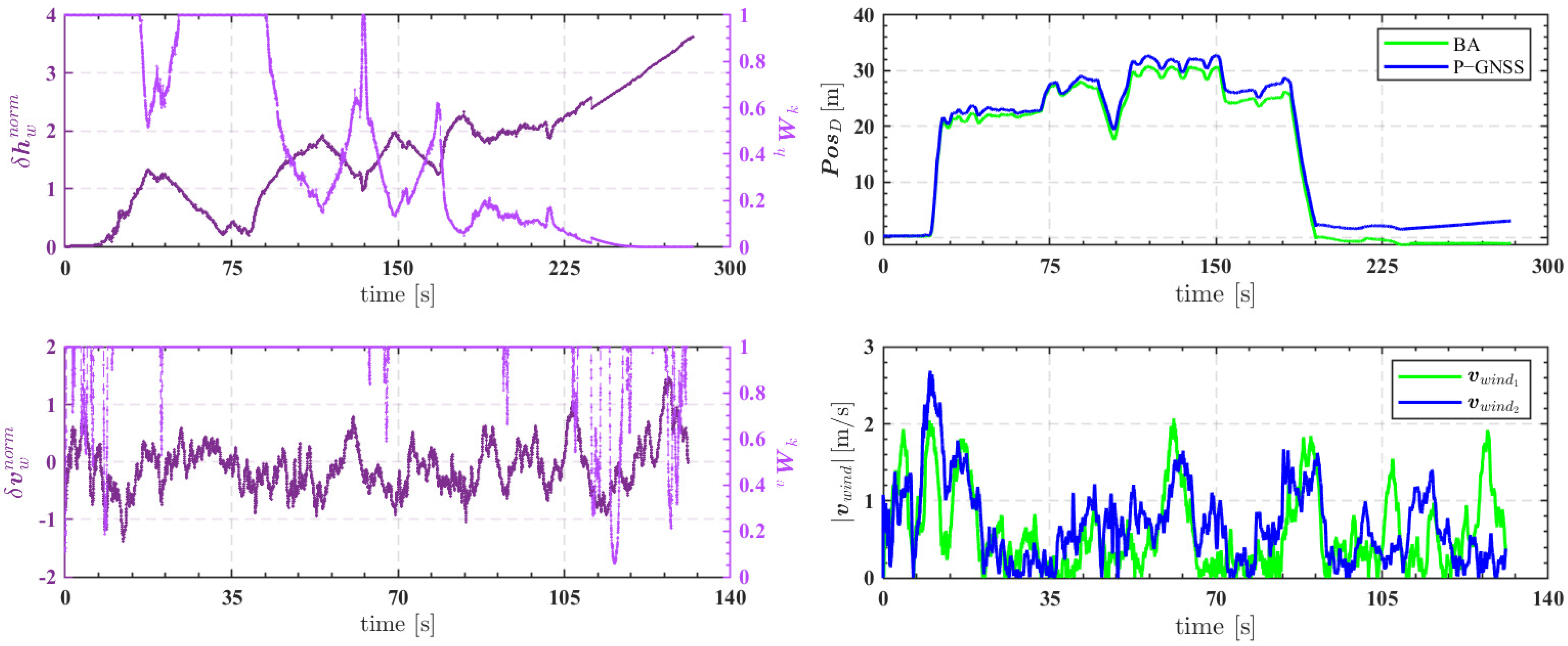 - A consistency-based node optimization strategy is developed for hierarchical architecture and node selection. This strategy introduces a high-level consistency evaluation by constructing statistics of altitude differences of BA/P-GNSS measurement, enabling real-time detection of severe P-GNSS drifts and selecting out high-precision layers. Moreover, through joint wind-speed consistency evaluation and geometric optimization, high-precision nodes with superior prediction reliability are identified as leader nodes for follower-layer navigation.