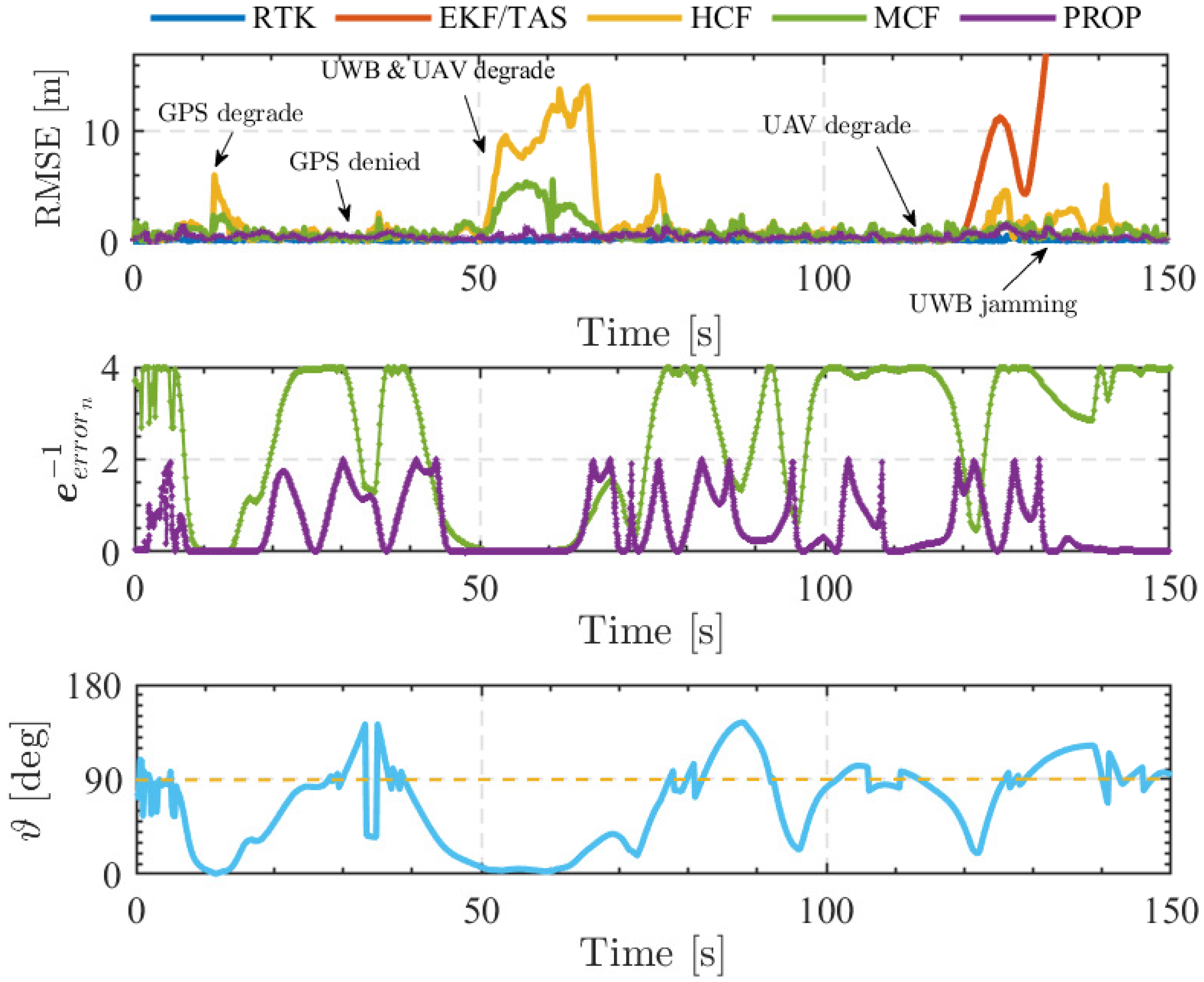 - This work demonstrates that the framework achieves the navigation objective of short-term stability and long-term drift suppression of the leader layer in GNSS-denied.