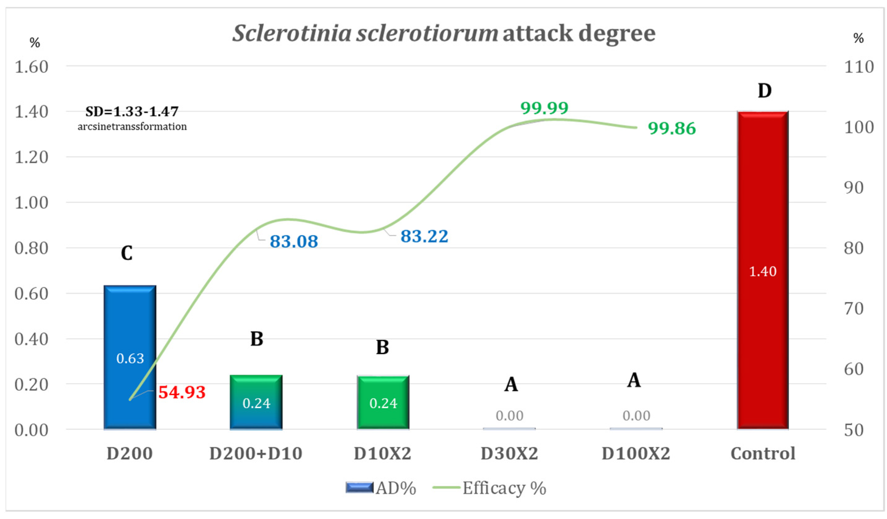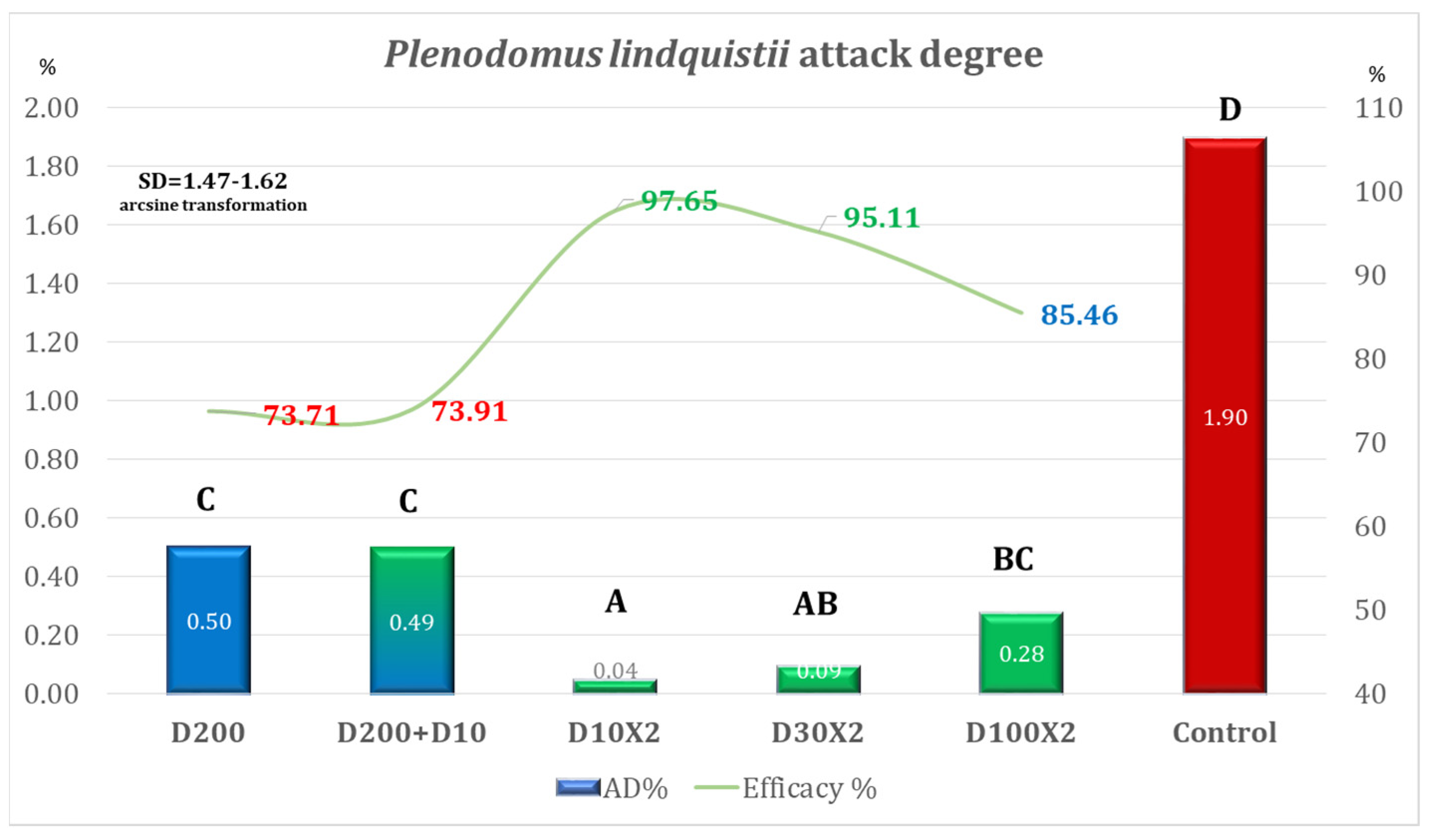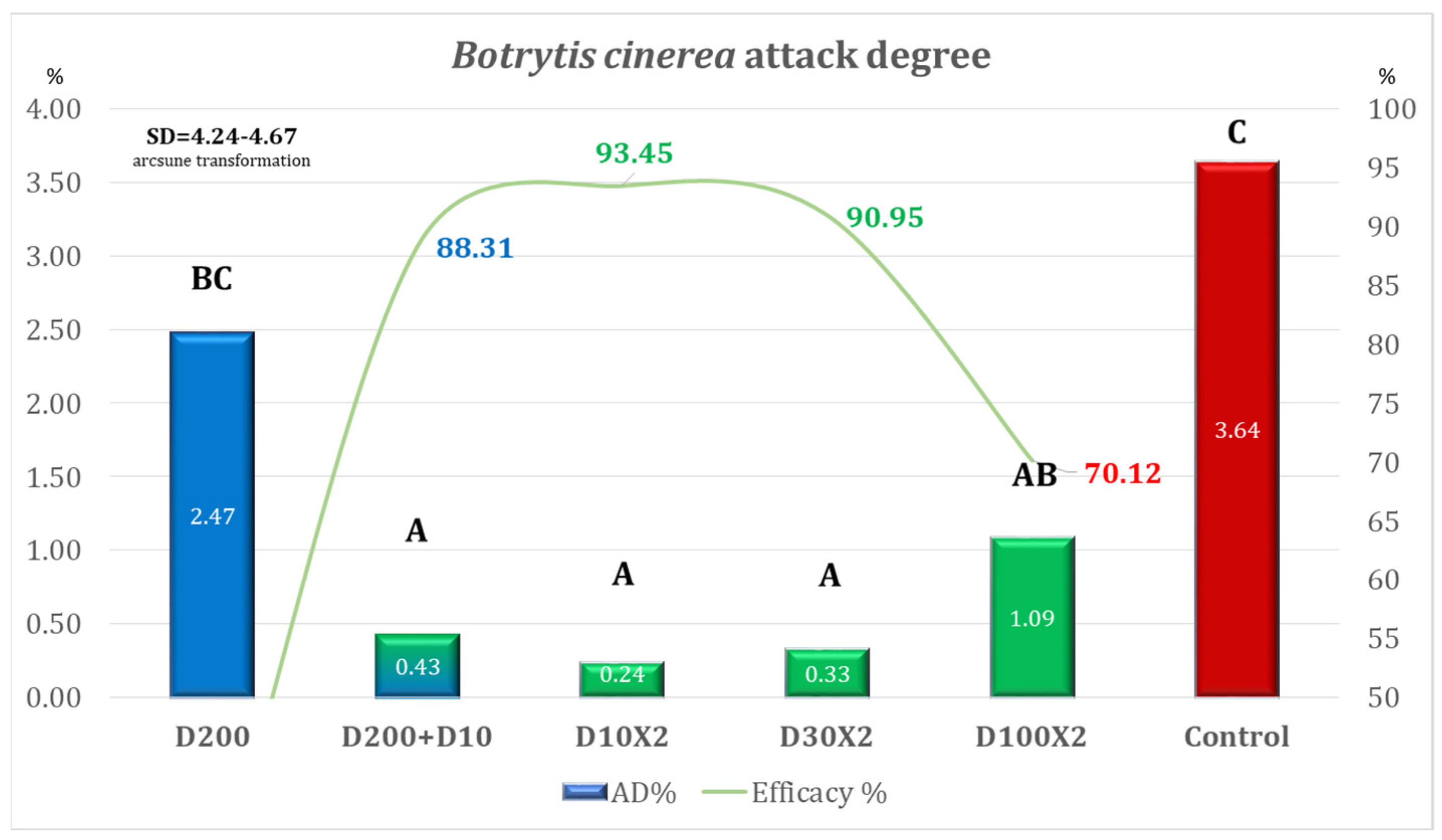 | Variant | AD% | Efficacy% | Time for Application Per ha |