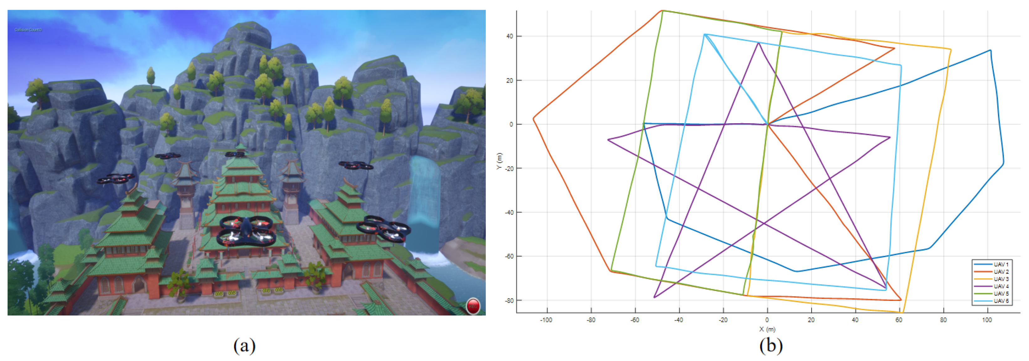 Figure 4, the curves with different colors in the figure represent the trajectories of six different drones respectively, which is consistent with