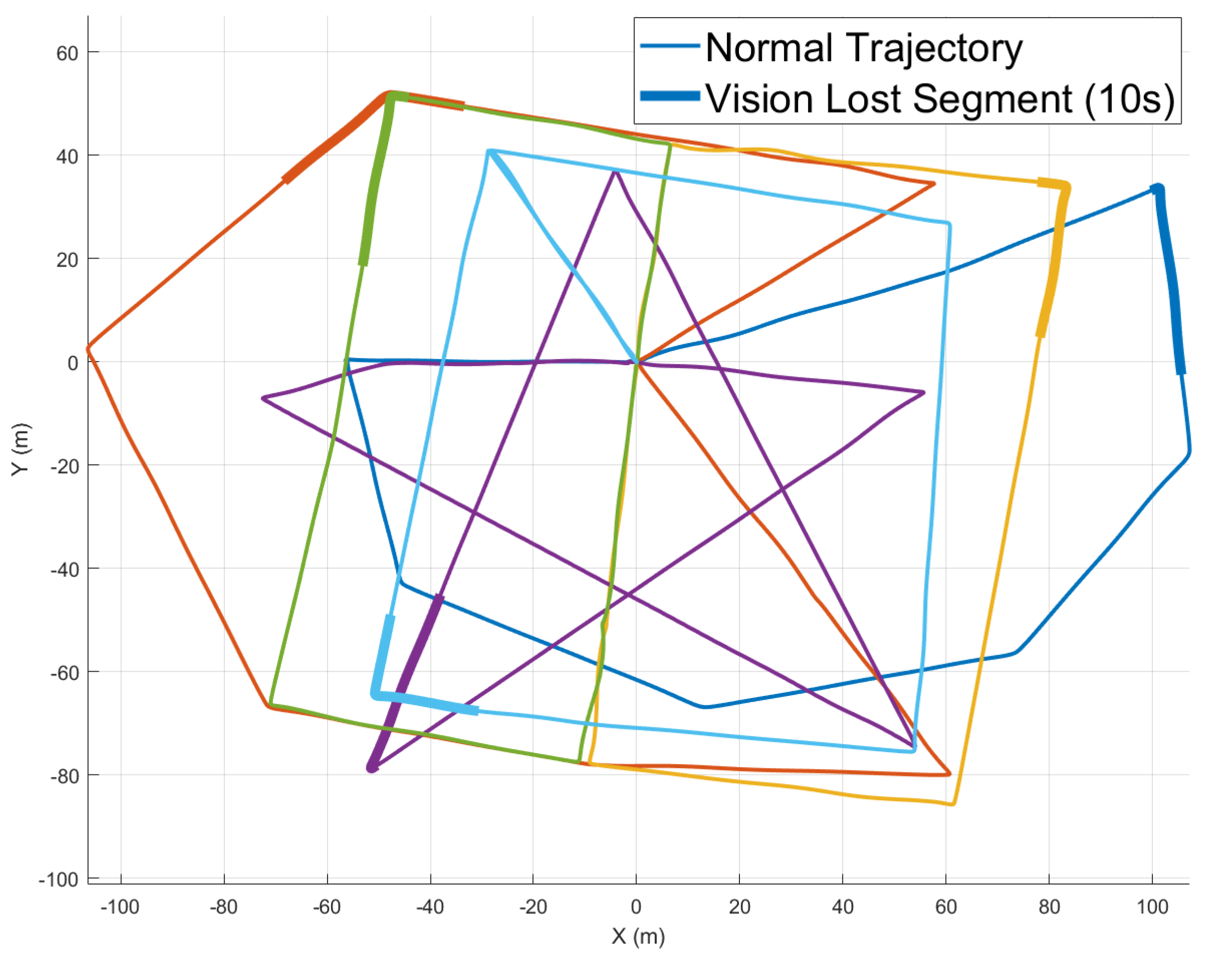 In the simulated vision loss experiment, the UAV’s positioning results are shown in