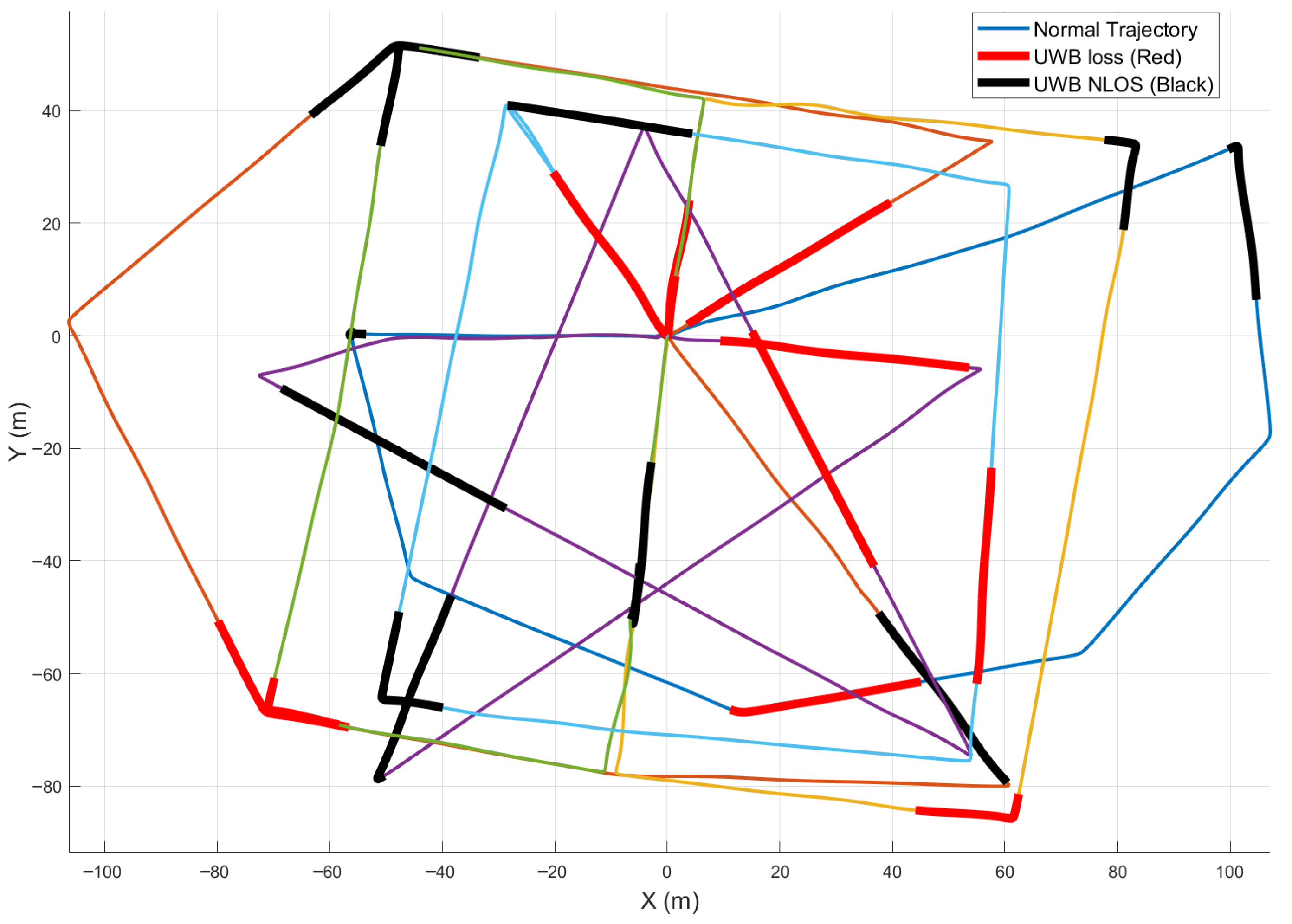 In the simulated UWB abnormality experiment, the UAV’s positioning results are shown in