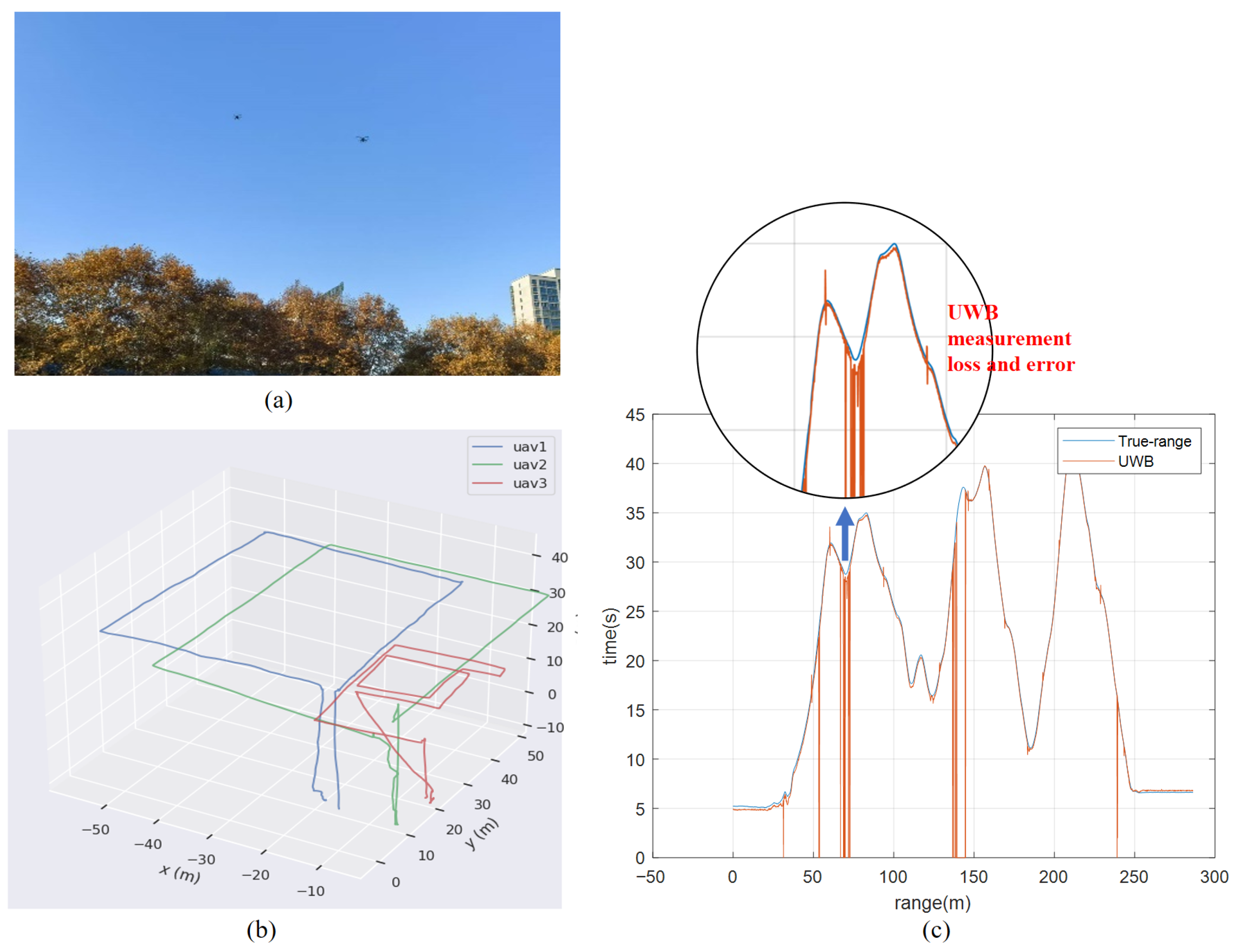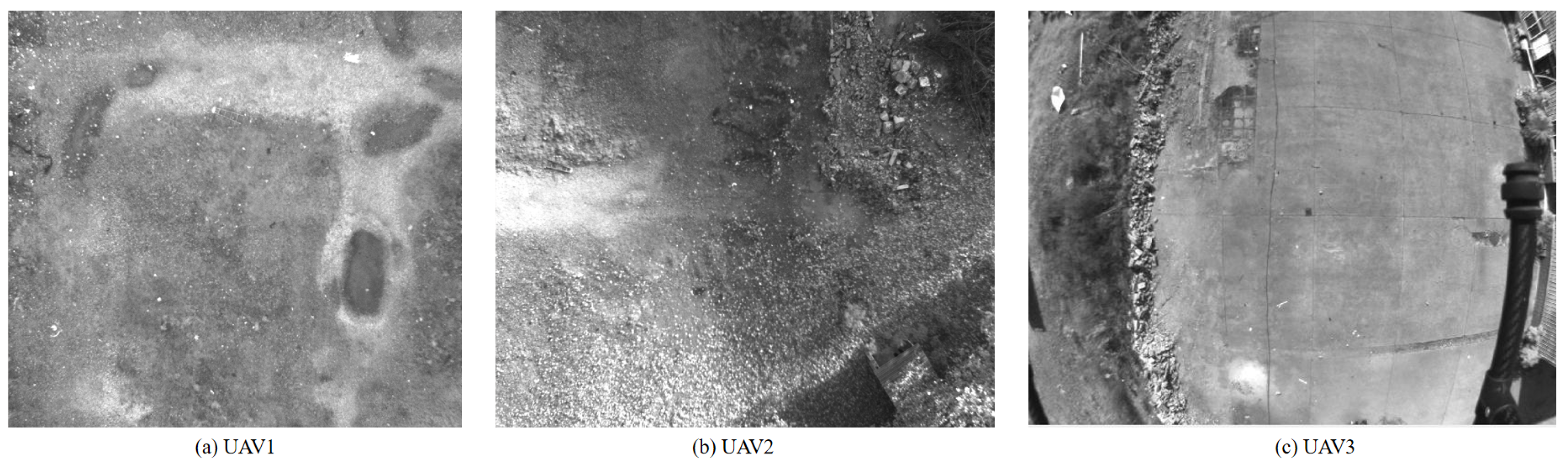 Figure 7a. The drones are equipped with high-precision RTK positioning equipment as the ground truth reference. In the real-world experiment, the images captured by the drone camera are shown in