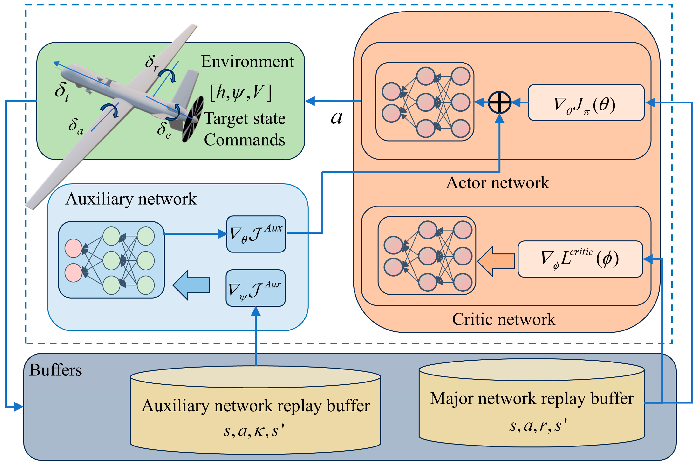3.1. Reinforcement Learning Aircraft Controller with Stable Auxiliary Gradients