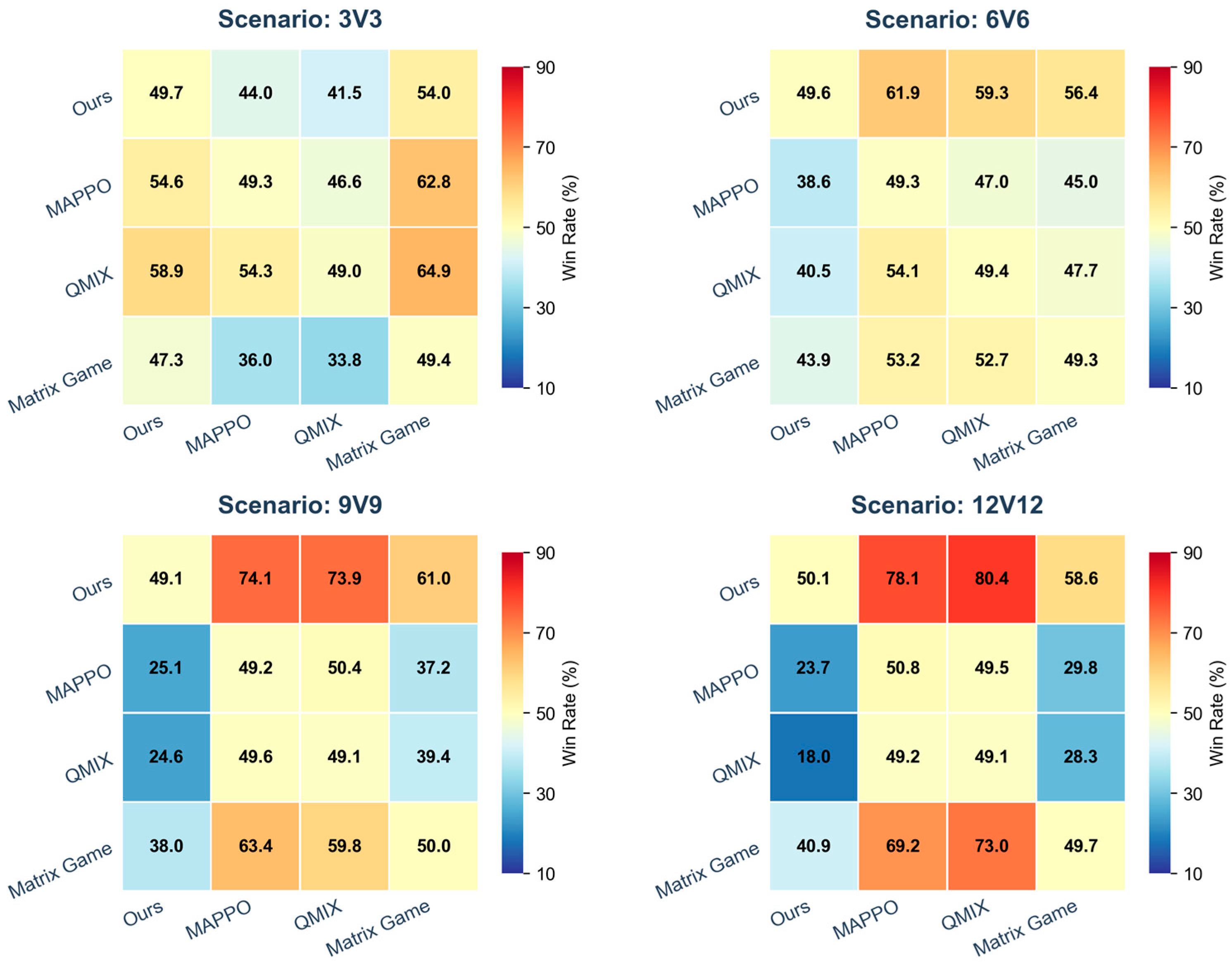 - The simulation of various large-scale pursuit–evasion games demonstrates the advantages of this framework in terms of training time and large-scale scalability.