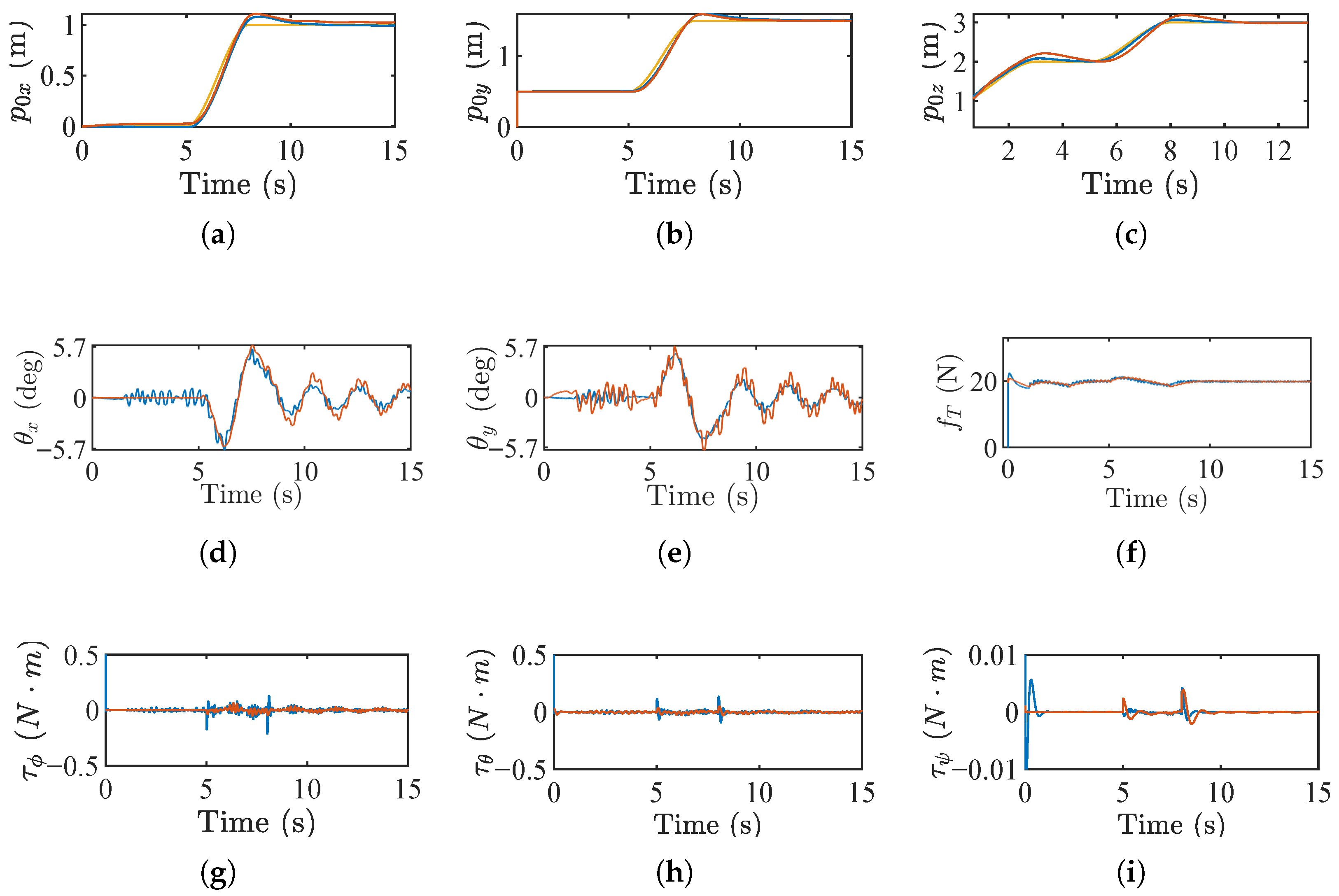 - Xian, B.; Wang, S.; Yang, S. Nonlinear adaptive control for an unmanned aerial payload transportation system: Theory and experimental validation. Nonlinear Dyn. 2019, 98, 1745–1760. [Google Scholar] [CrossRef]