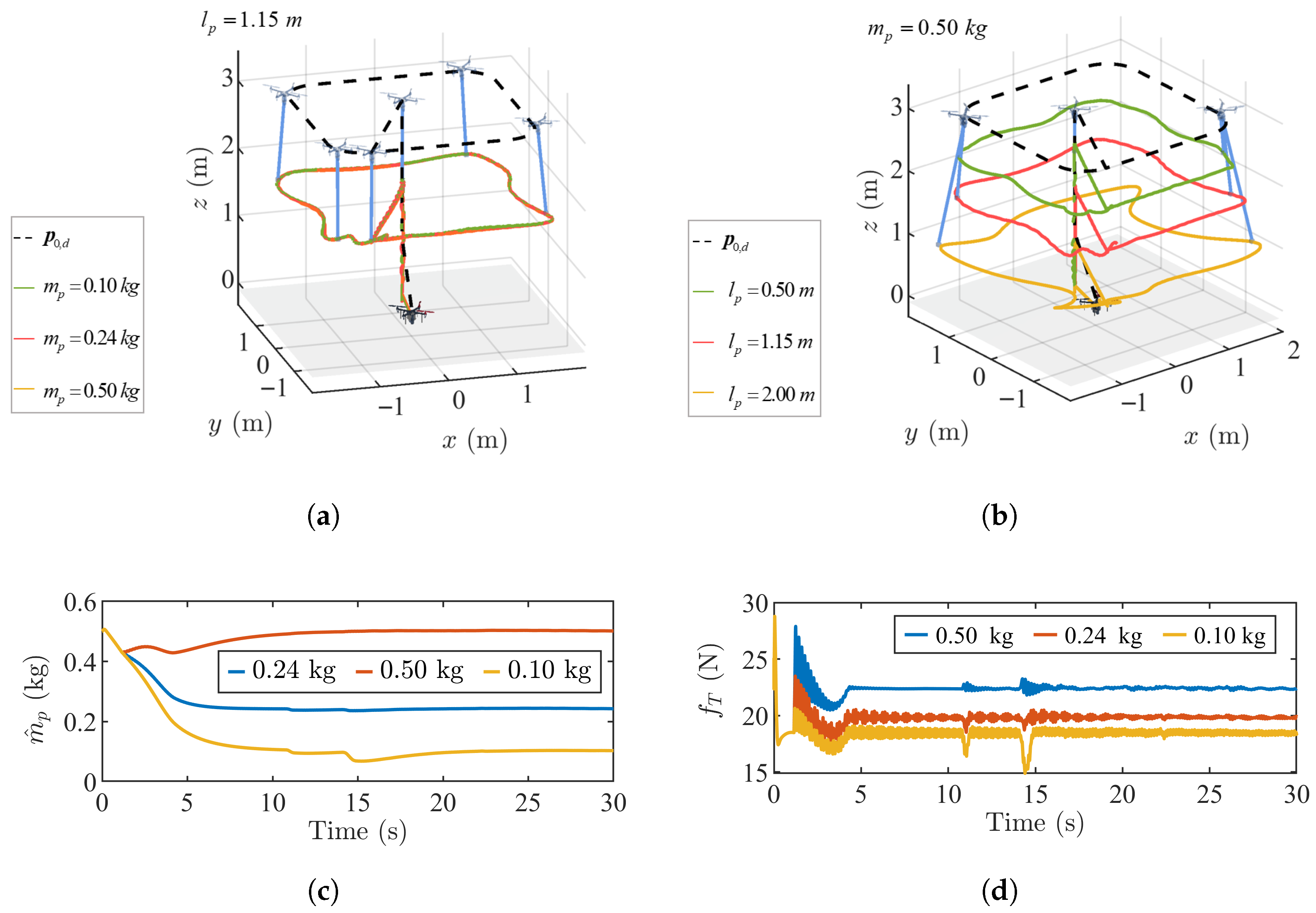 - The geometry-aware compensation eliminates gain scheduling requirements across 5× payload mass and 4× cable length variations, enabling deployment without parameter-specific tuning.