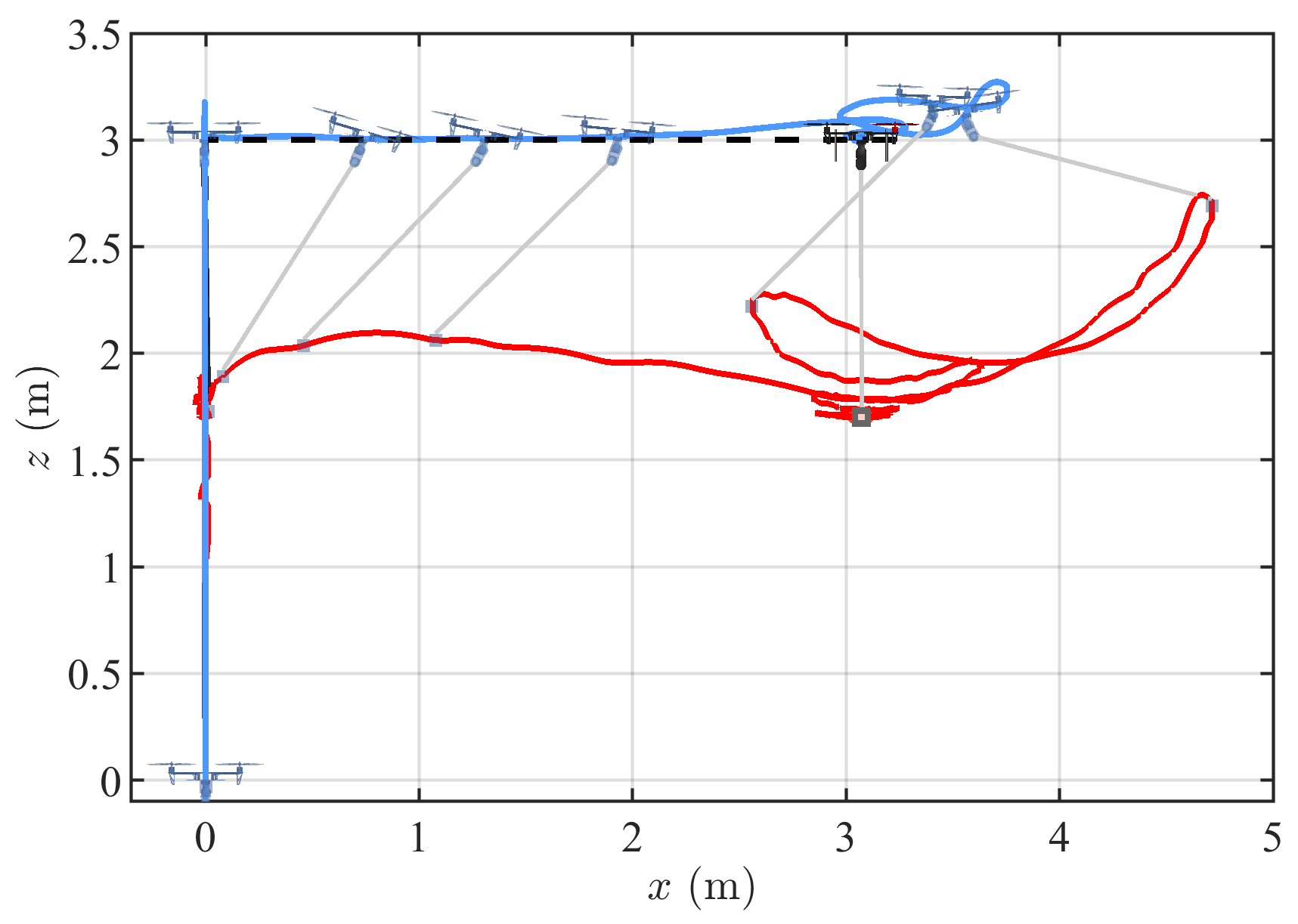 | Masses of UAV, link 1, link 2, and payload | 1.436, 0.118, 0.225, 0.240 kg | |
