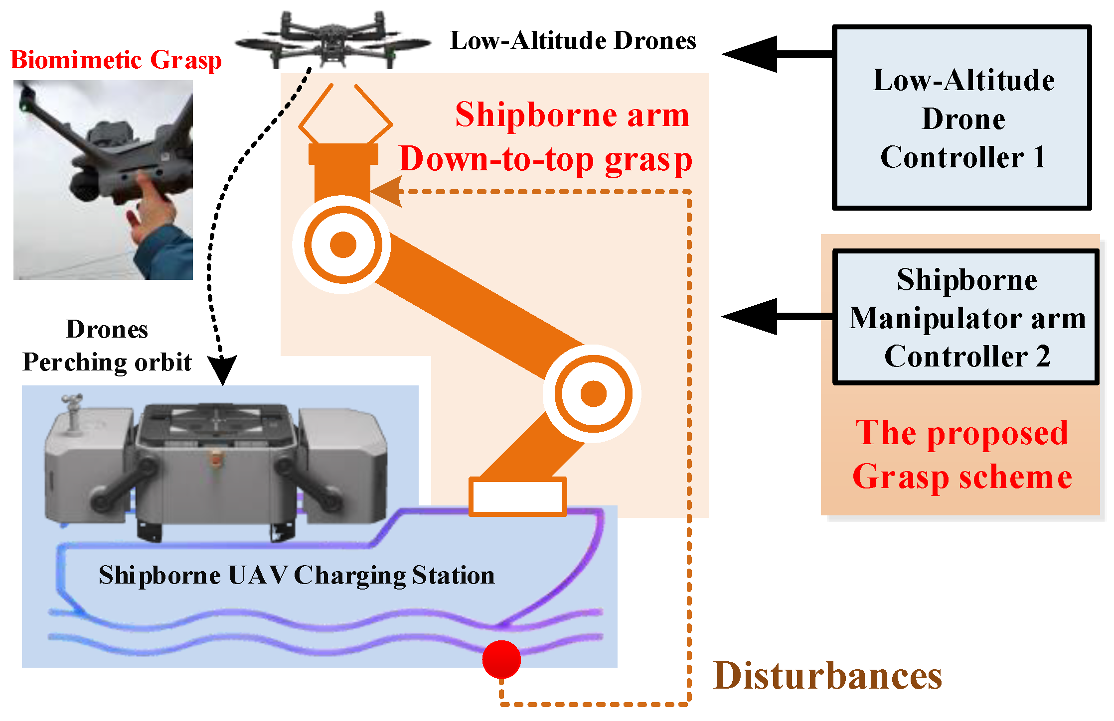 Figure 1. The down-to-top grasp drones paradigm for shipborne UAV dock stations.
