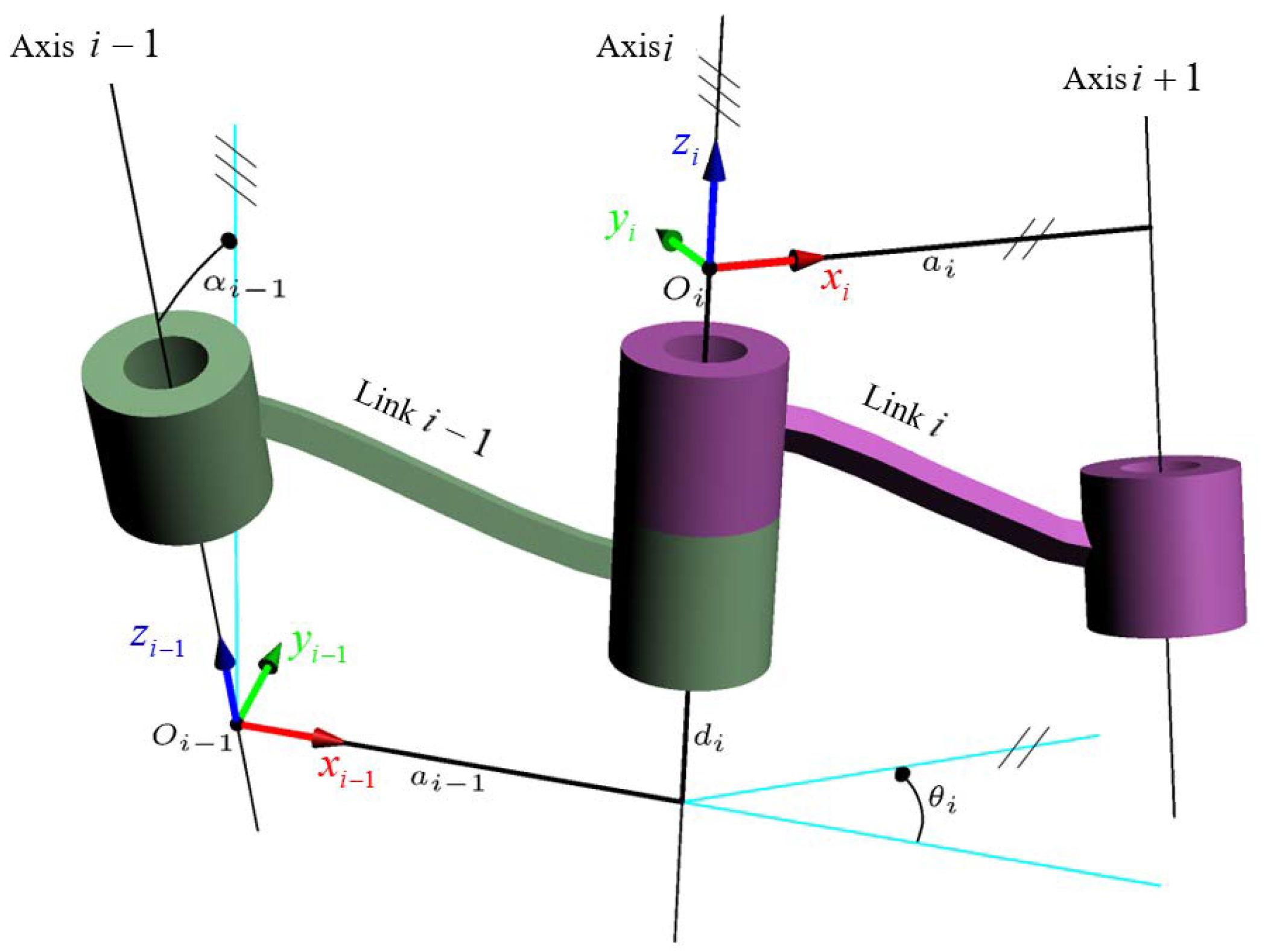 T i   i 1 = R i   i 1 t i   i 1 0 1 = c θ i s θ i 0 α i 1 s θ i c α i 1 c θ i c α i 1 s α i 1 s α i 1 d i s θ i s α i 1 c θ i s α i 1 c α i 1 c α i 1 d i 0 0 0 1