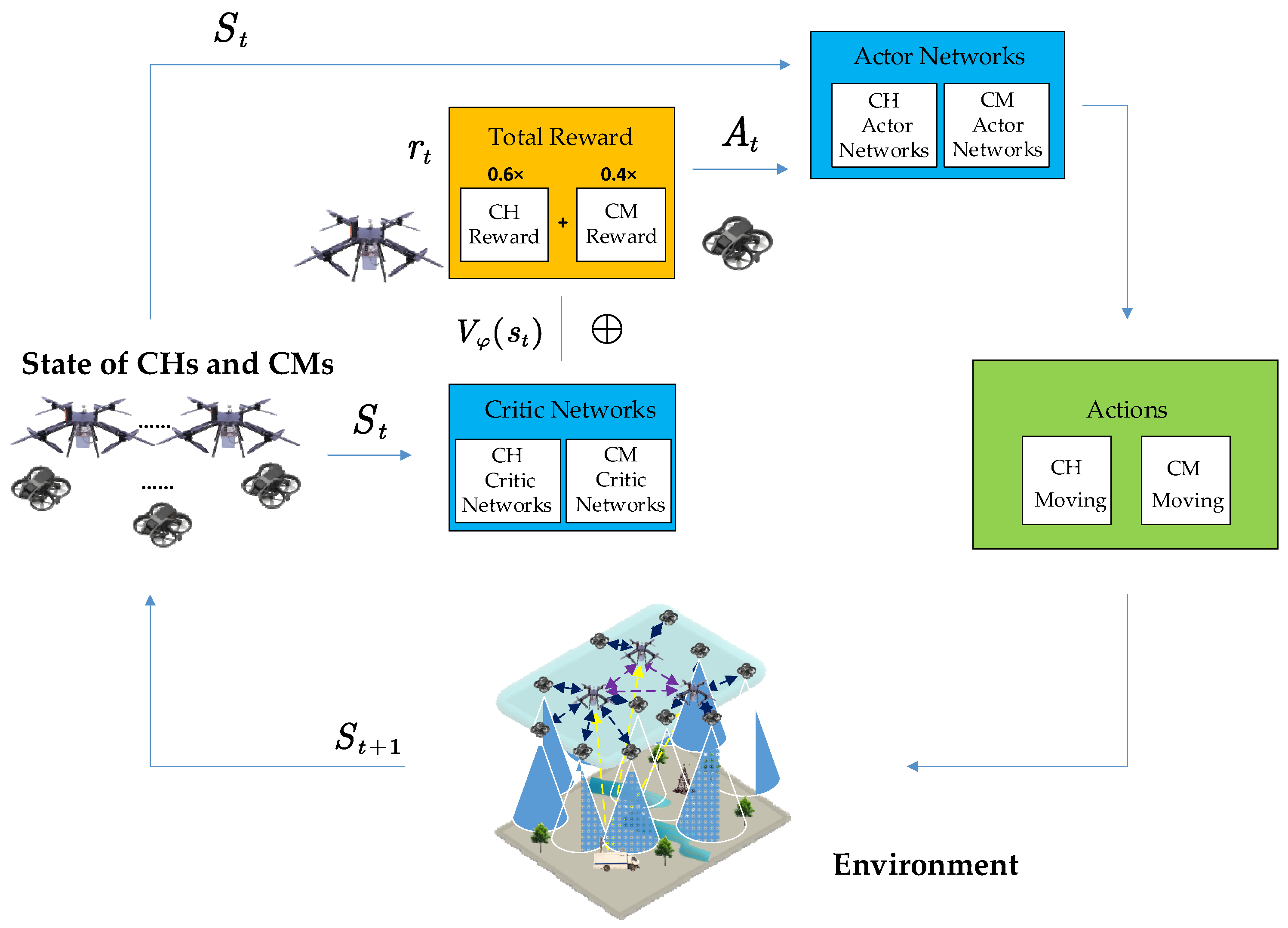 5. Distributed Heterogeneous Multi-Agent Deep Reinforcement Learning Algorithm for UAV Clustering