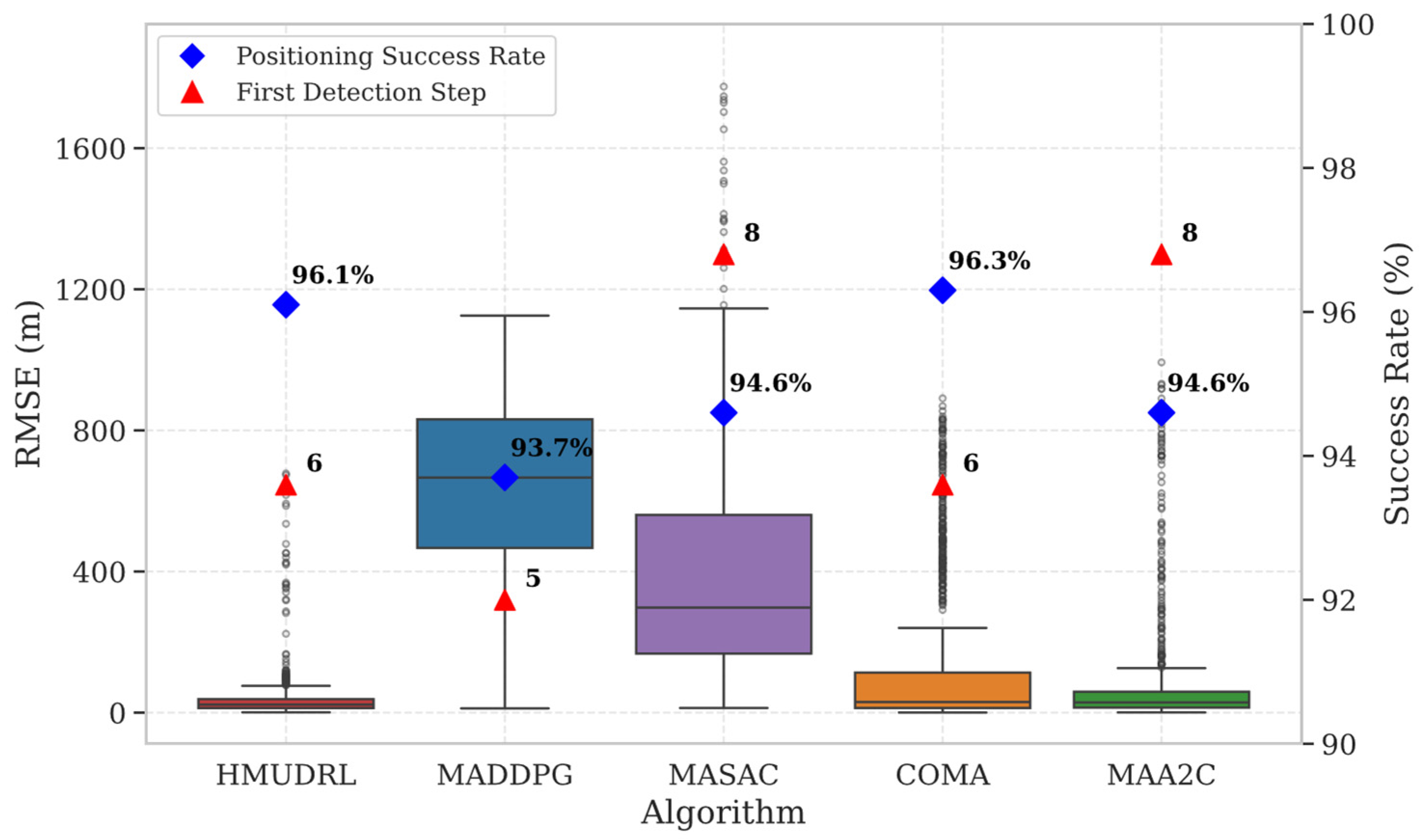 - The HMUDRL algorithm integrates a branched network architecture to improve computational and communication efficiency, while jointly leveraging received signal power differences and AOA measurements to enhance localization accuracy.