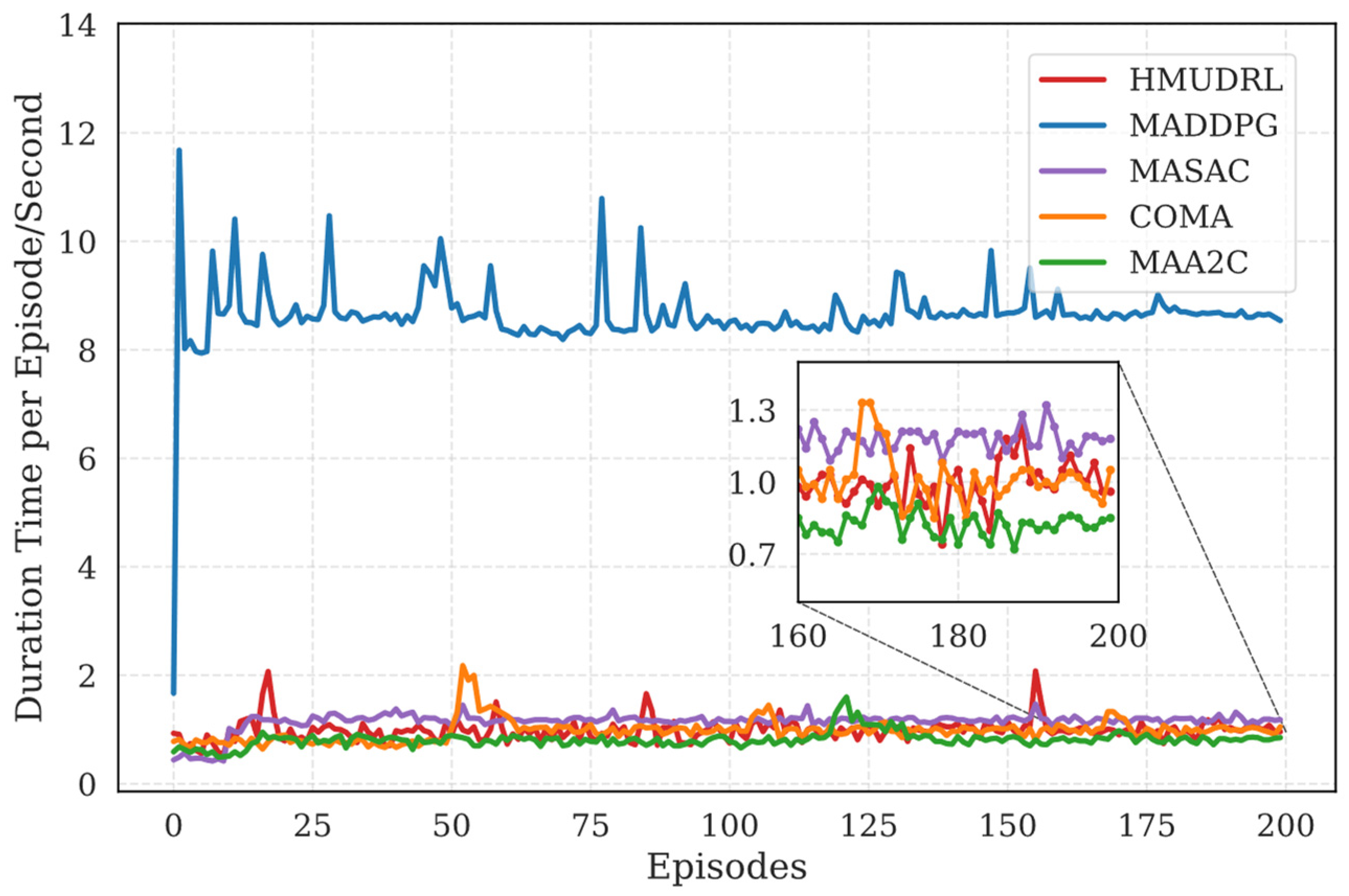 | MADDPG [23] | 620.43 | 666.15 | 1125.30 | 12.06 | 93.7% | 5 |