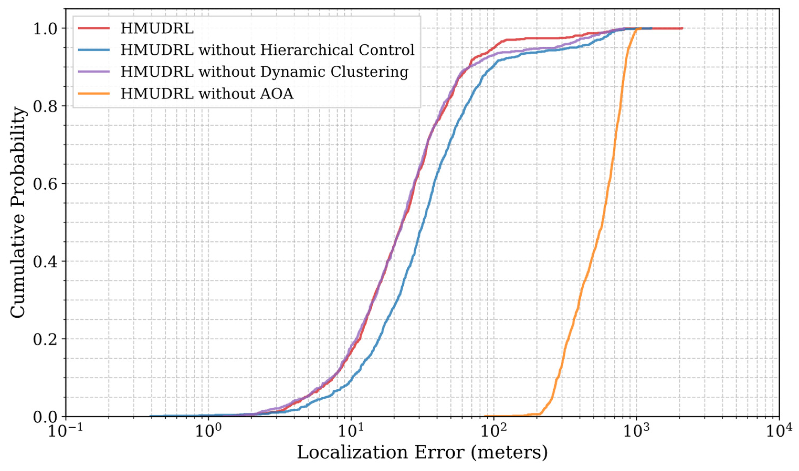 - HMUDRL w/o AOA: excludes AOA measurements from agent observations, relying only on RSS.