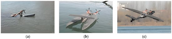 “Flying Fish” of BUAA. (a) Cross-water stage; (b) Gliding on the water surface; (c) Taking off from the water surface. Reprinted with permission from Ref. [34]. Copyright 2009, Liu H.X.