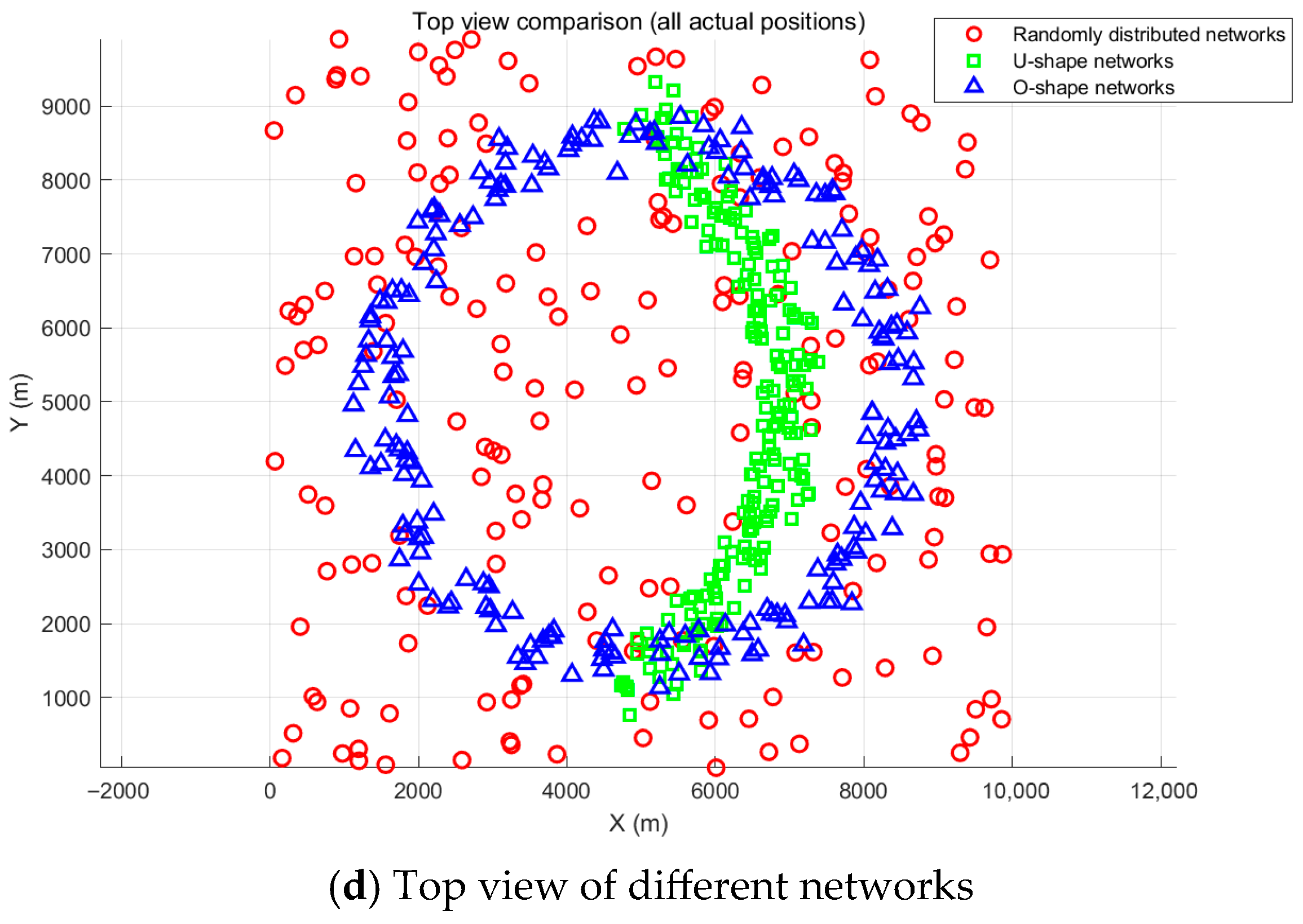 Figure 5 tests reveal that the traditional MDS algorithm has a much larger localization error than the proposed ST-DCL method in all of these networks, including poorly connected, randomly distributed networks; non-convex U-shape networks; and highly symmetric O-shape networks. It must be attributed to the innate defects of the traditional MDS algorithm, including static processing, global sensitivity, and the lack of error resistance mechanism. The proposed ST-DCL method delivers the error suppression in the temporal and spatial dimensions through its DW-MDS module. Additionally, the ST-GNN module is added for local nonlinear and dynamic topology compensation so as to effectively cope with all kinds of complex networks. Therefore, the ST-DCL method is proven to be highly robust and greatly capable of generalization.