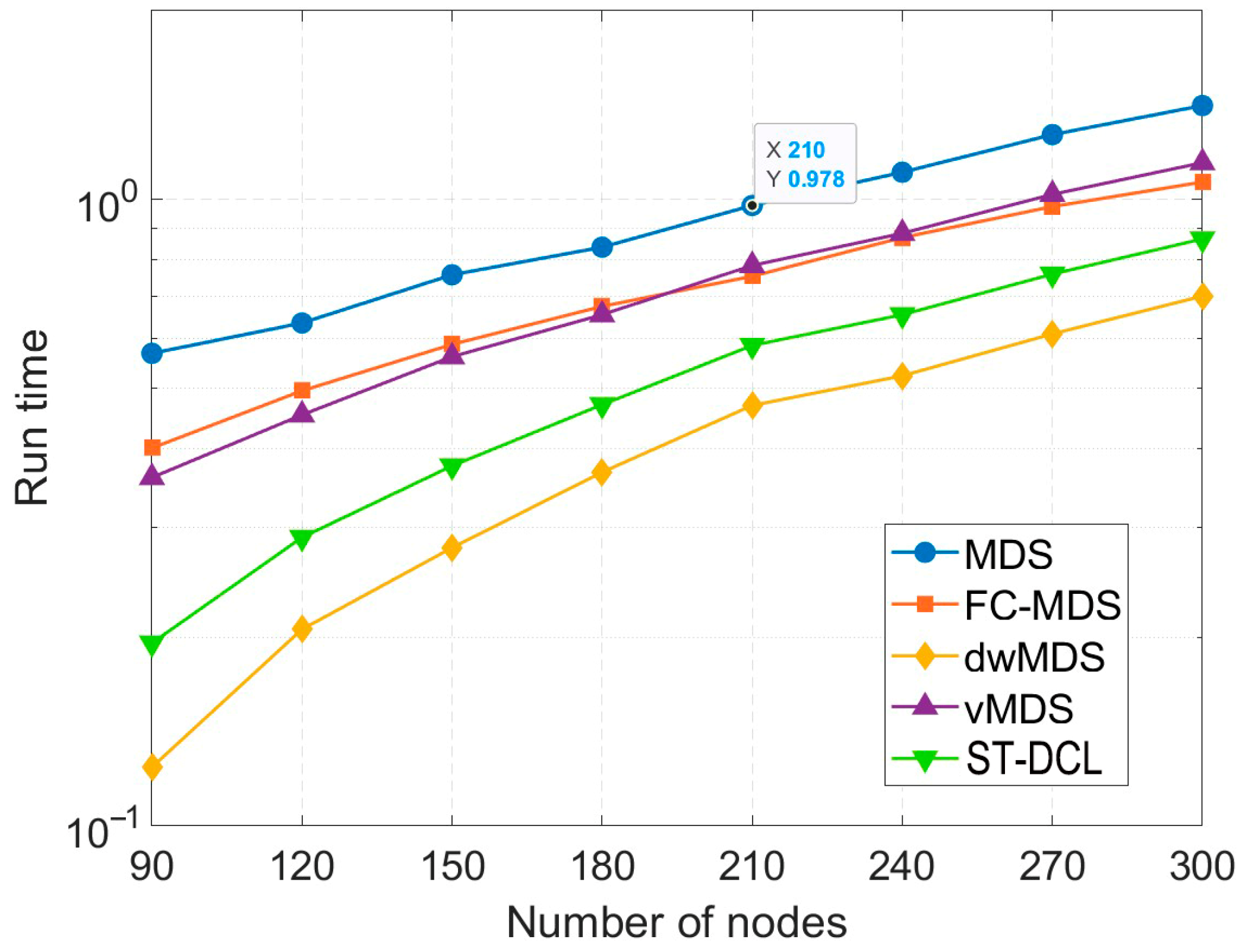 Table 1. ST-DCL achieves an average runtime of approximately 45 ms, meeting the 10 Hz real-time requirement. In comparison, the traditional MDS is unsuitable for real-time operation due to its O(N