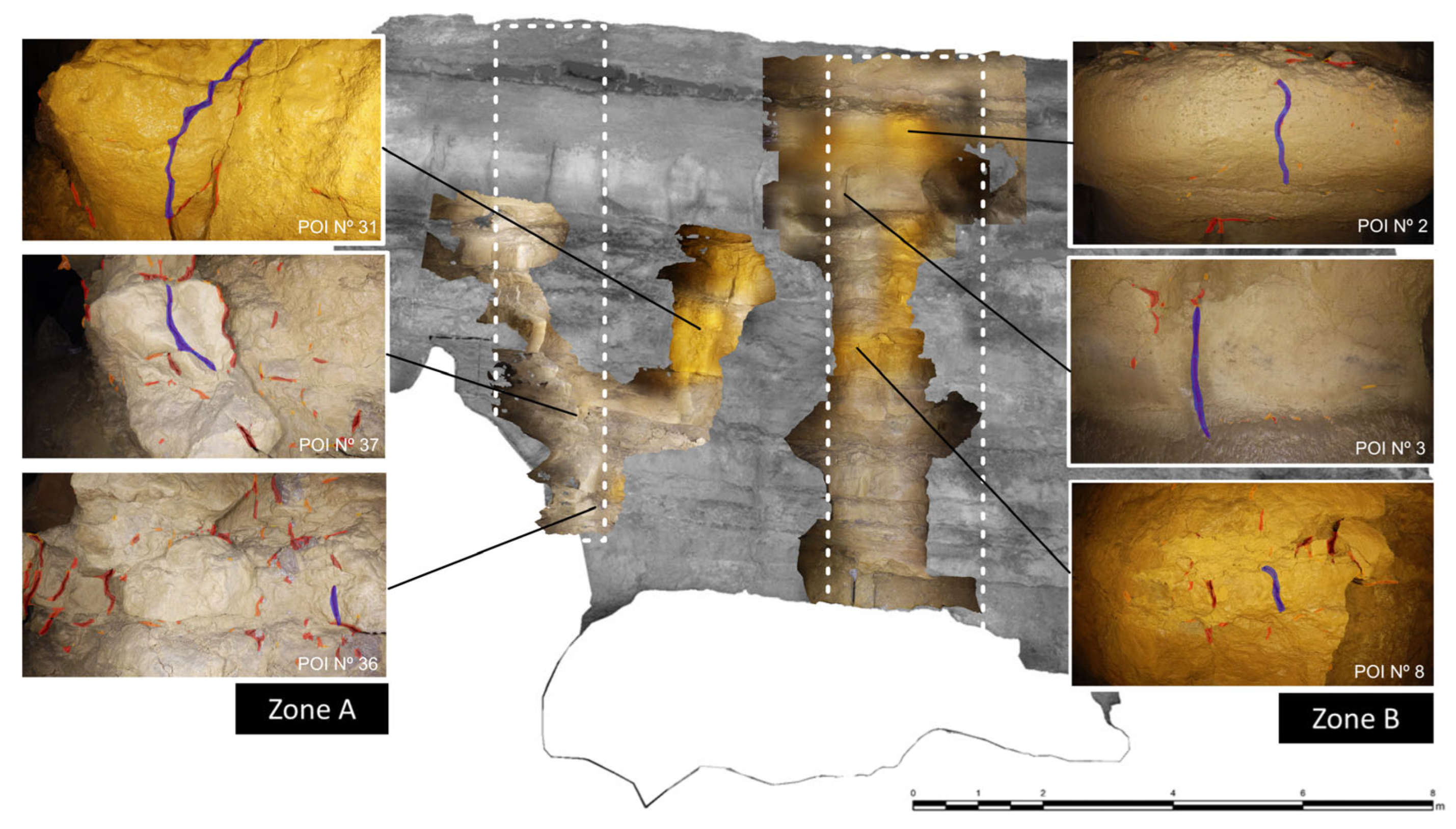 - Bayarri, V.; Prada, A.; García, F. A Multimodal Research Approach to Assessing the Karst Structural Conditions of the Ceiling of a Cave with Palaeolithic Cave Art Paintings: Polychrome Hall at Altamira Cave (Spain). Sensors 2023, 23, 9153. [Google Scholar] [CrossRef]