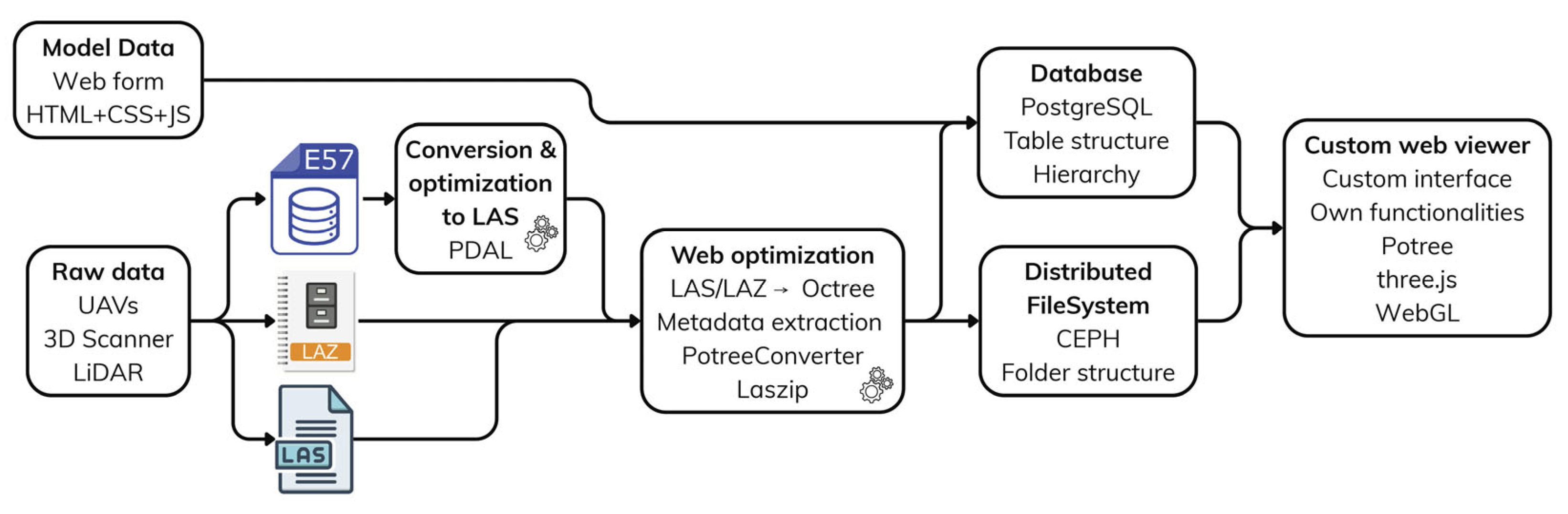 - Schütz, M. Potree: Rendering Large Point Clouds in Web Browsers. Ph.D. Thesis, Technische Universität Wien, Vienna, Austria, 2015. [Google Scholar]
