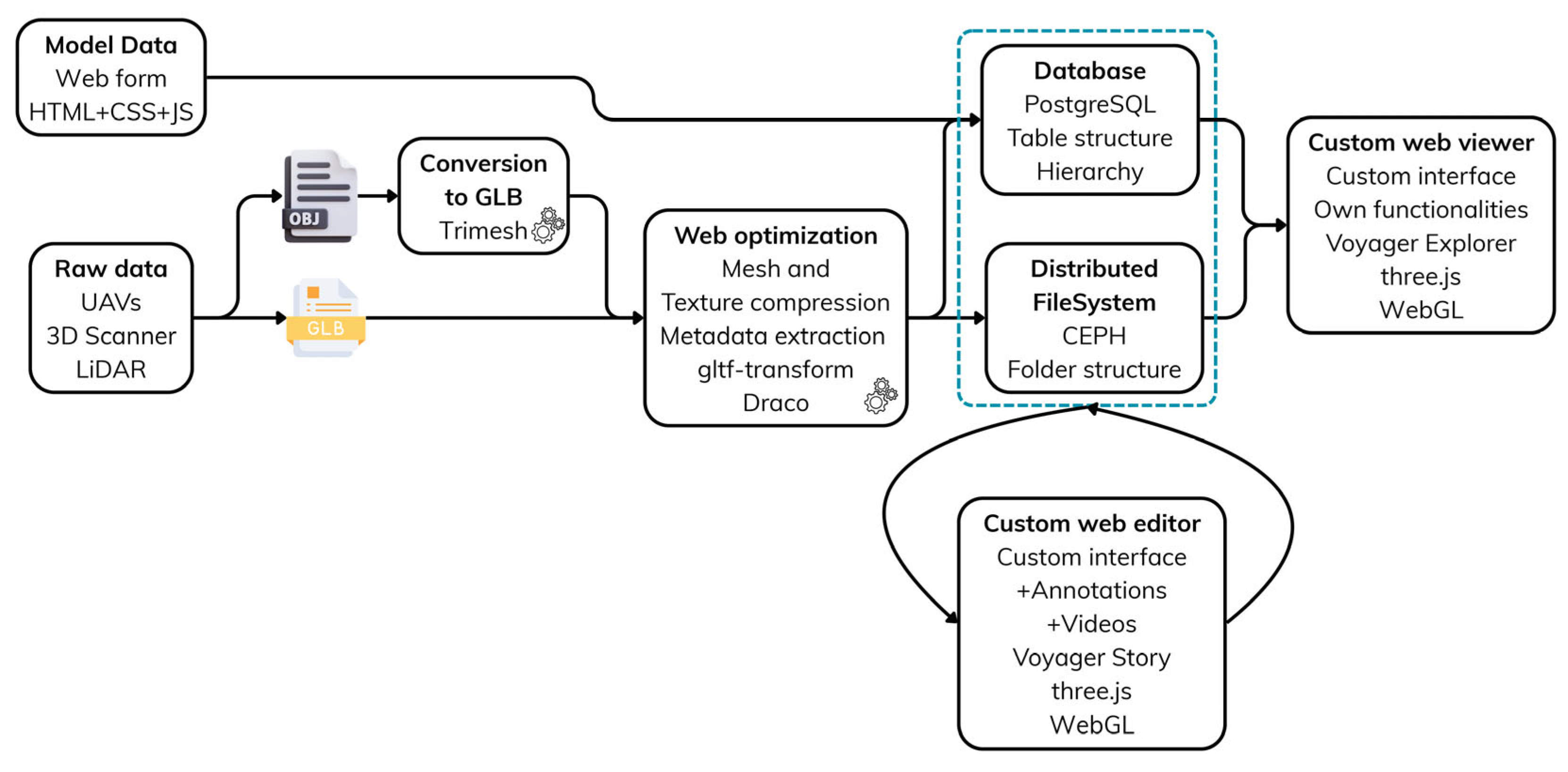 - Khronos Group. glTF: GL Transmission Format; 3D Scene and Model Transmission Format; Khronos Group: Beaverton, OR, USA, 2025. [Google Scholar]