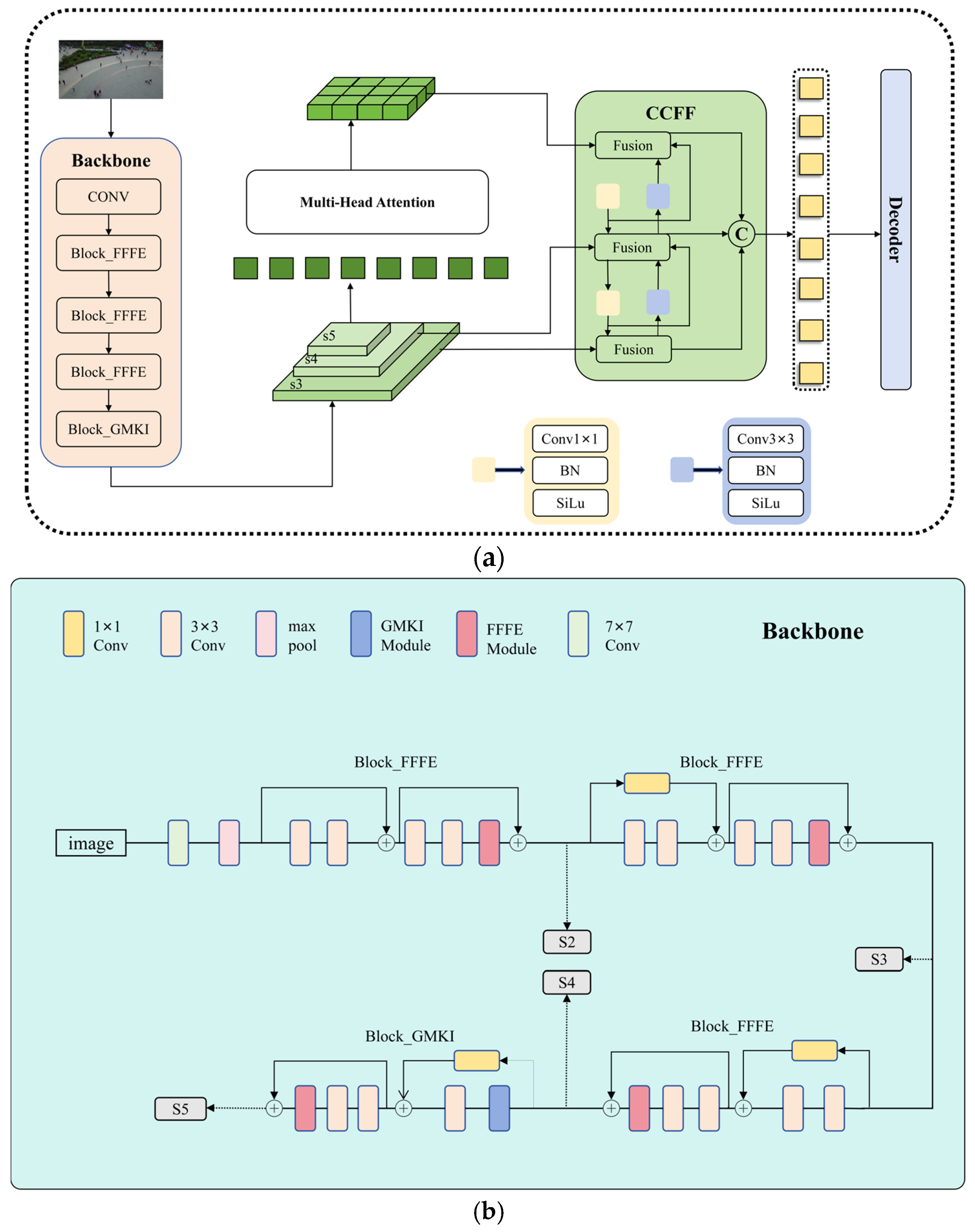 - A ResNet-based modified backbone is proposed to enable multi-scale feature fusion, resolving the problem of small target detail degradation in the downsampling stage;