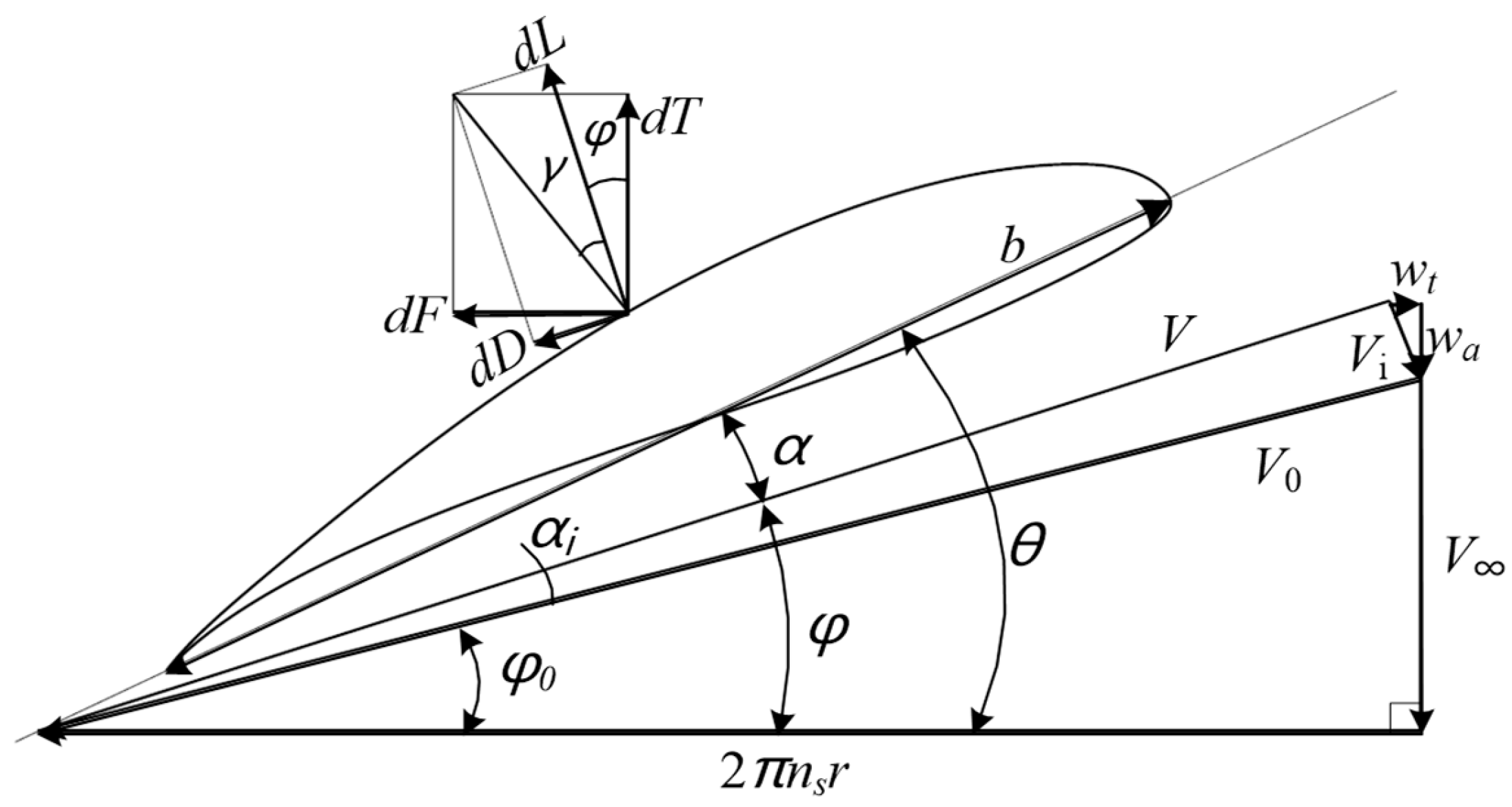 2.1. Propeller Performance Prediction Based on Blade Element Momentum Theory